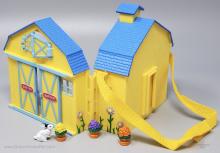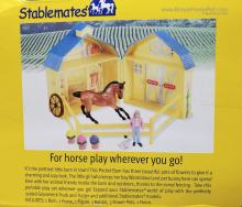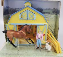 The Flower Barn Set #720032 was released through stores such as K-Mart, so not shown in the catalogs. It included a bay or buckskin Warmblood, doll, Sitting Rabbit, pocket barn, fencing and 3 flower pots.