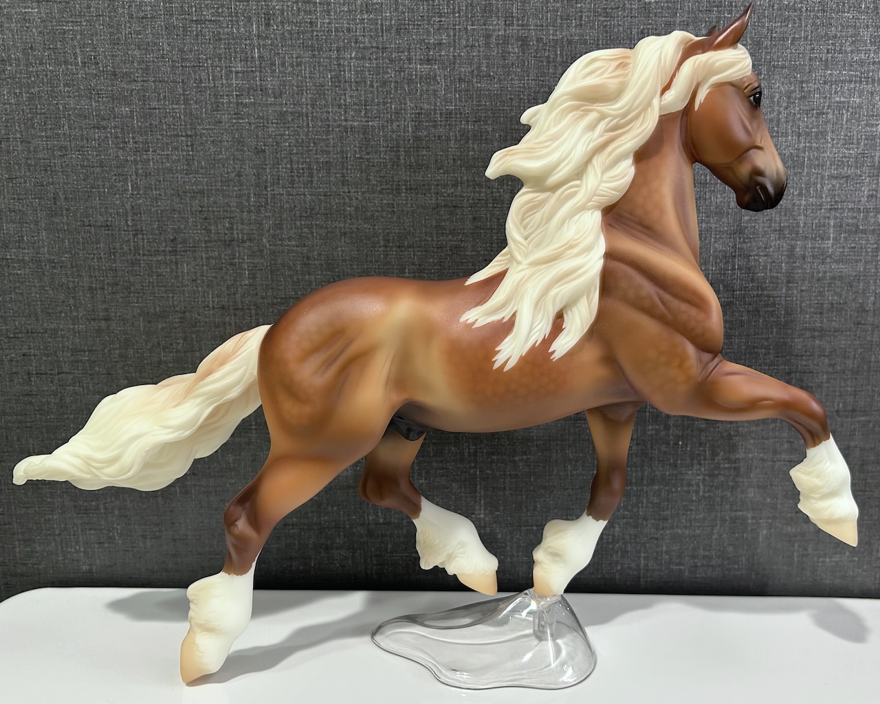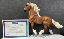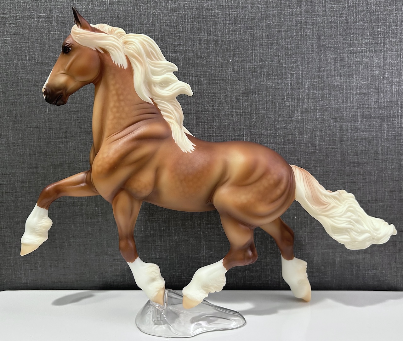 "Oops…I Did it Again, the BreyerFest Open Model Horse Show Overall Grand Champion prize! Twelve overall winners in this year’s BreyerFest Open Show will get to take home this gorgeous dappled flaxen chestnut." www.breyerhorses.com. Also advertised as a total run of 10 pieces. Has 'BreyerFest 2024' stamp on belly.