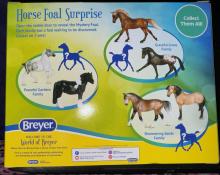 Horse Foal Surprise Set. Included a Rose Grey Trotting Warmblood, Buckskin Haflinger and a Chestnut Scratching Foal.