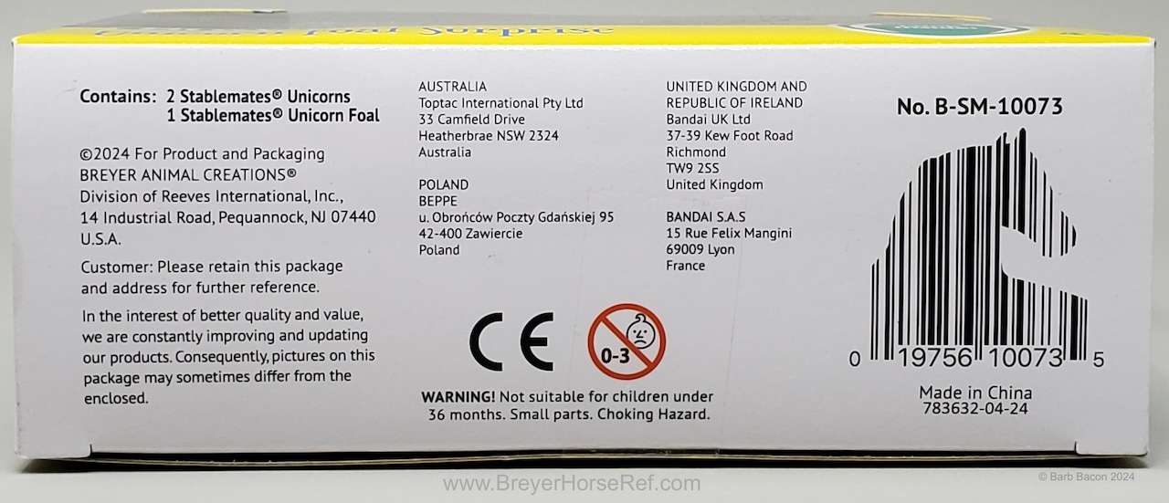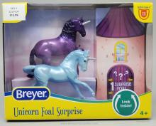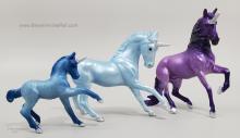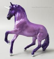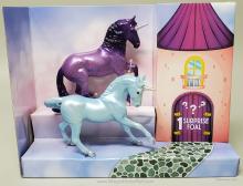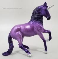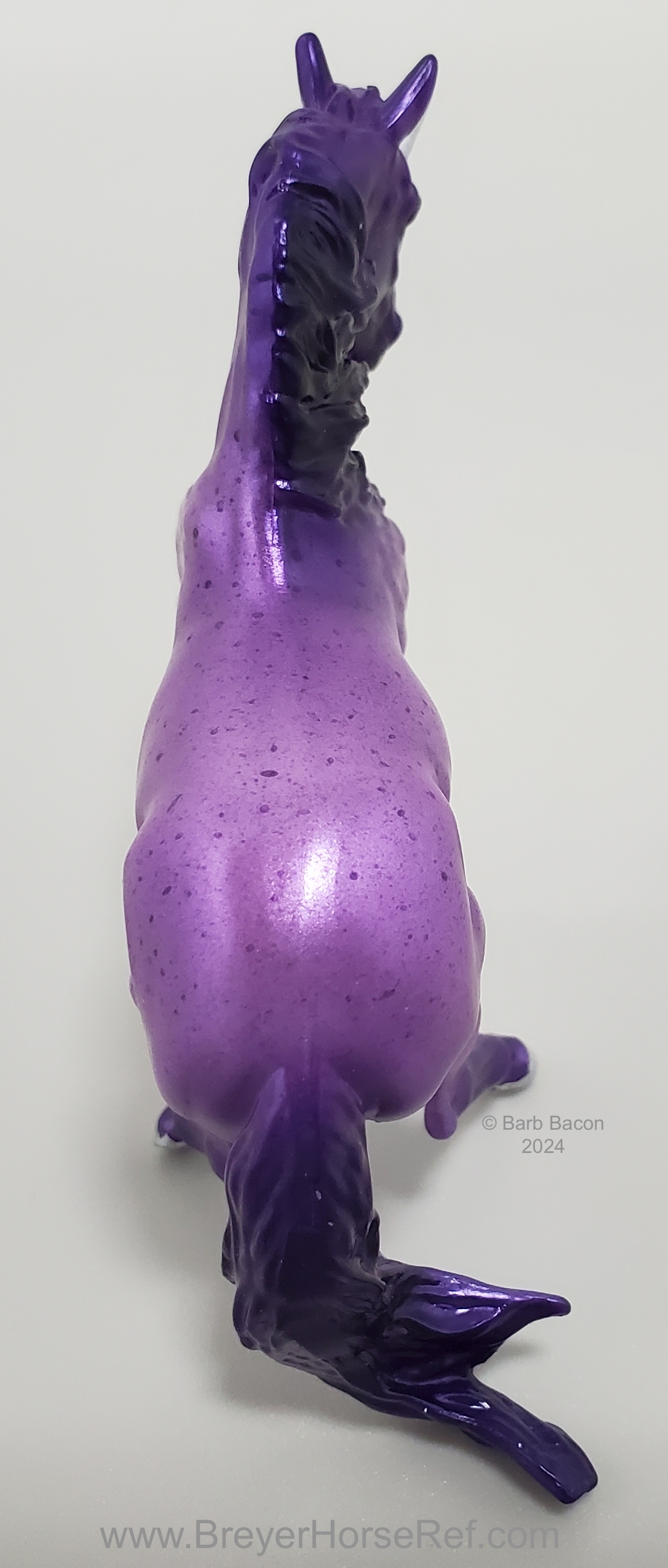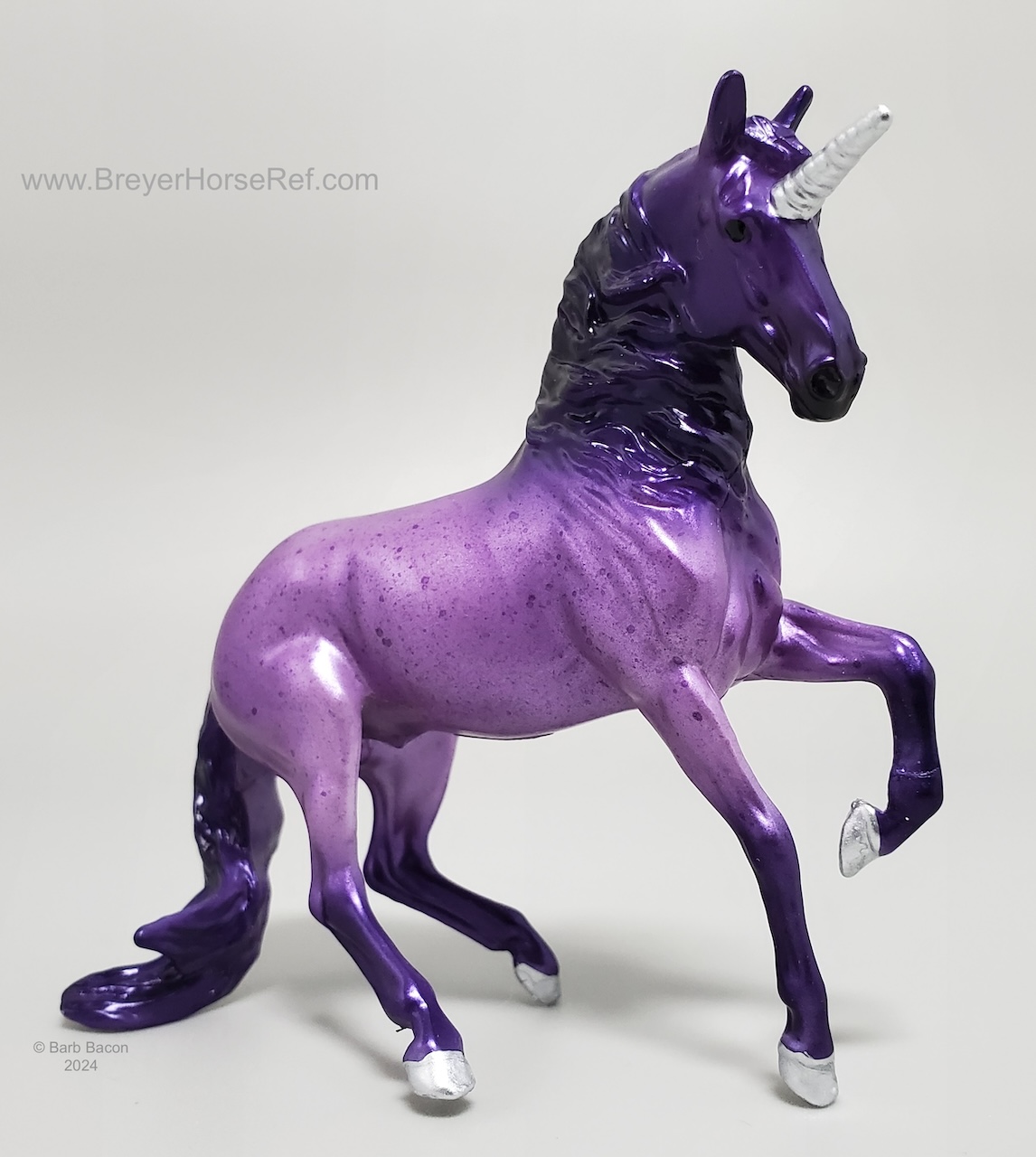 In 2024, released in the Unicorn Foal Surprise Set #B-SM-10073 Dazzling Cliffs Family. Included a Purple Alborozo, Blue Warmblood and a Blue Frisky Foal.