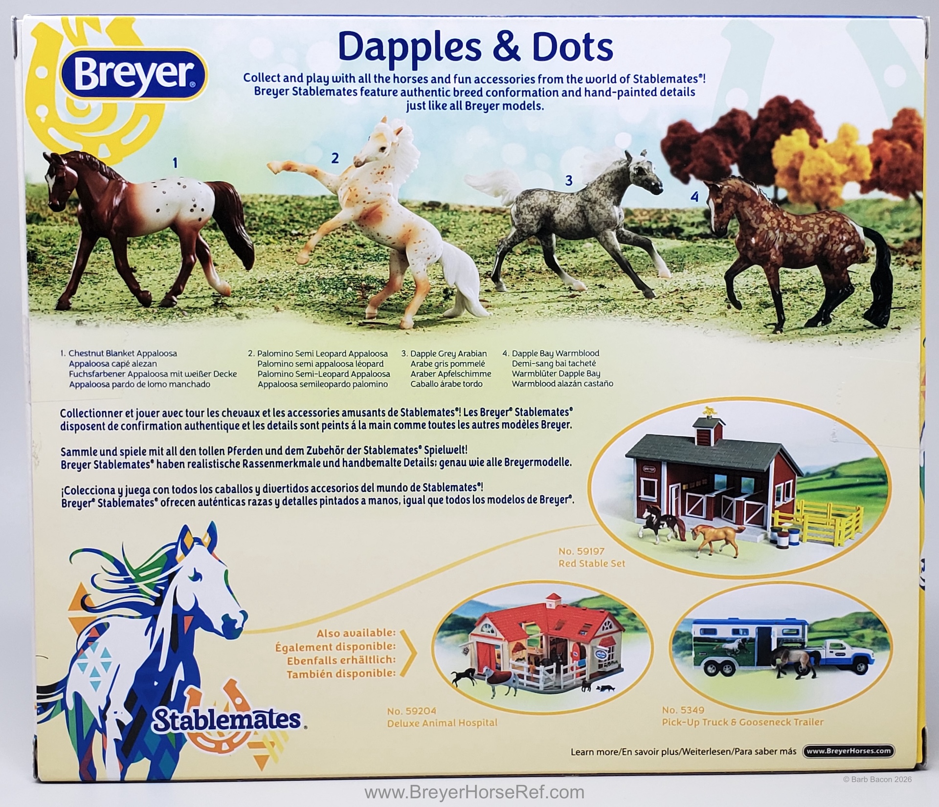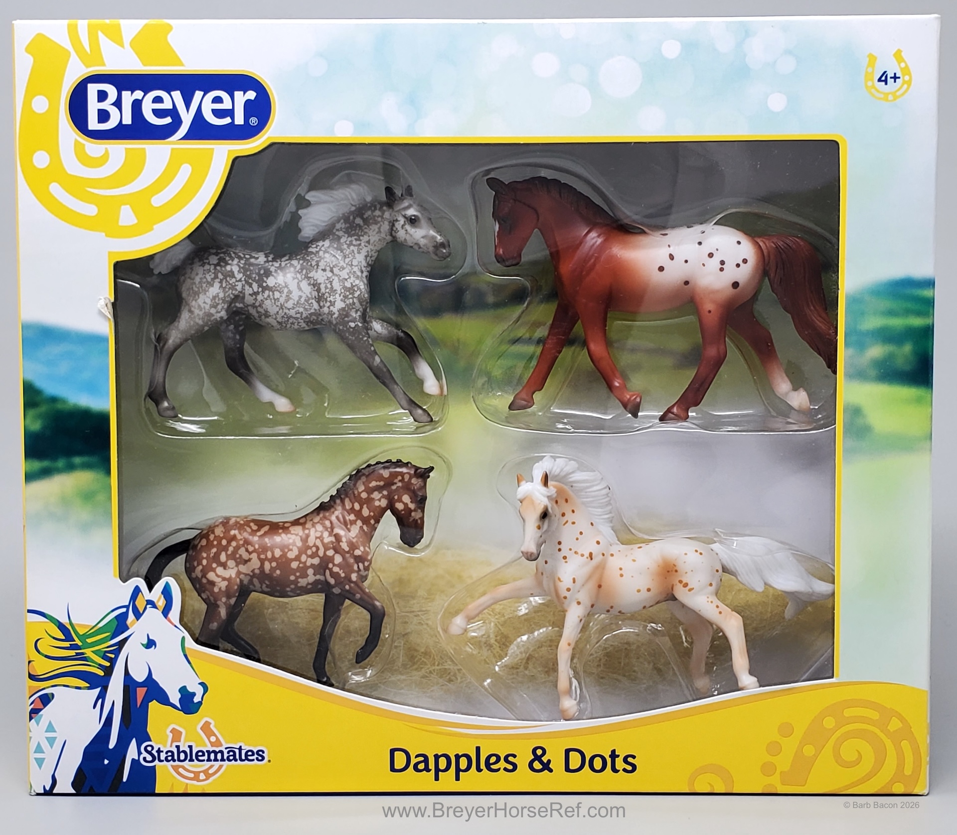 The Dapples and Dots Four Horse Set #6036 was available 2018-2020 and included the Arabian Endurance, Rearing Andalusian, Trotting Warmblood and Valegro. This set was on the 2020 Retired List.