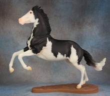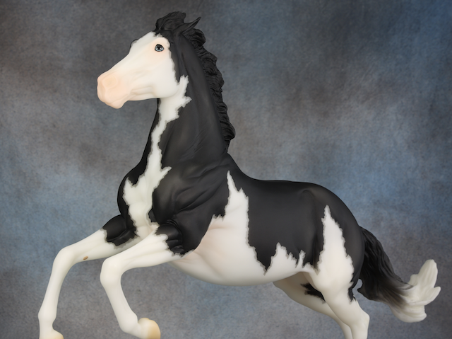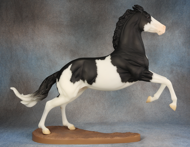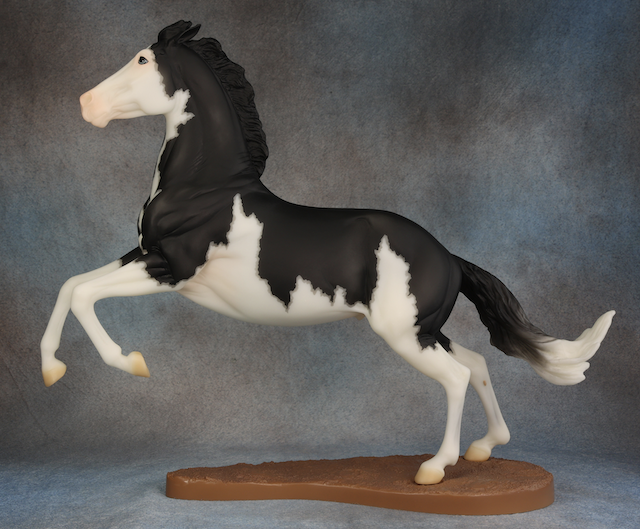 BreyerFest 2025 Auction Model. Described as a black splash pinto, designed by Sommer Prosser.