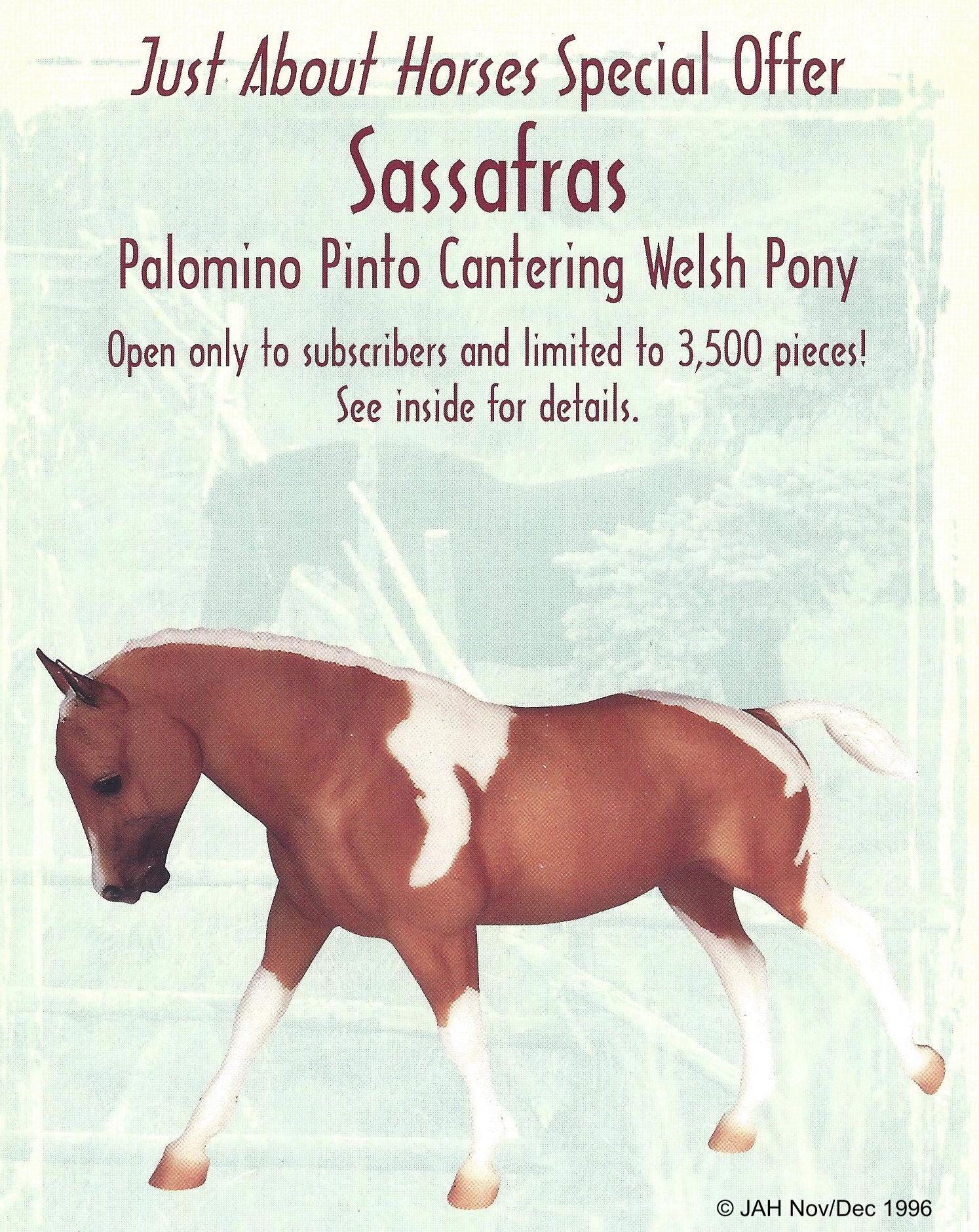 Palomino Pinto with unpainted ribbons. JAH ’97 handwritten on belly, and came with a COA. Some models did not have the writing on the belly. Advertised in 1996, but not released until March of 1997.
