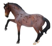 "A delightful pair of Mustangs is joining the 2026 Stablemates Club lineup! Bay roan stallion Arroyo is father to frisky filly Baja, who perfectly emulates her sire's personality. Arroyo's detailed coat includes dark "battle scar" markings from a lifetime of defending his herd, and Baja is painted as an accurate "baby" bay roan." www.breyerhorses.com.