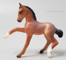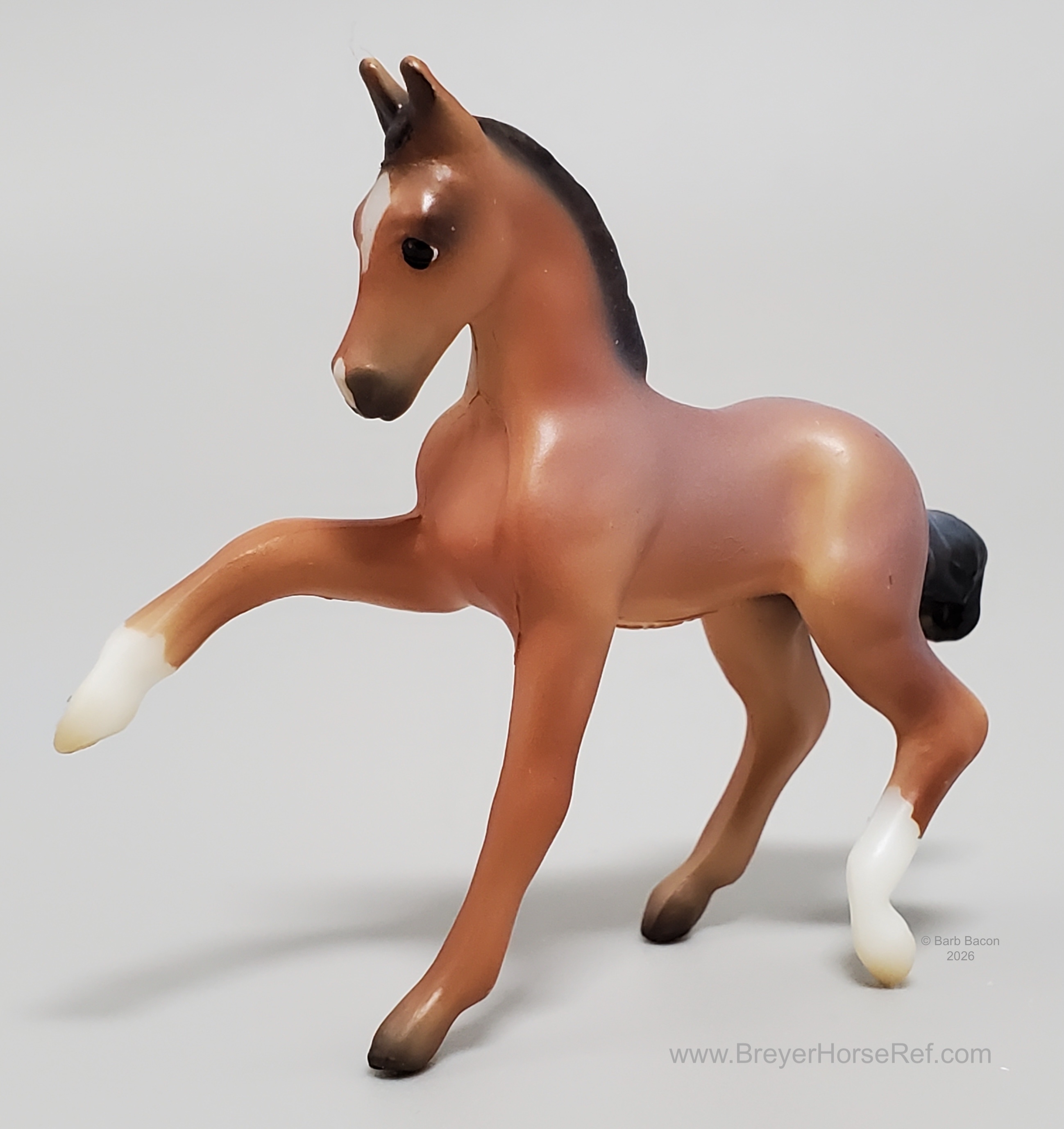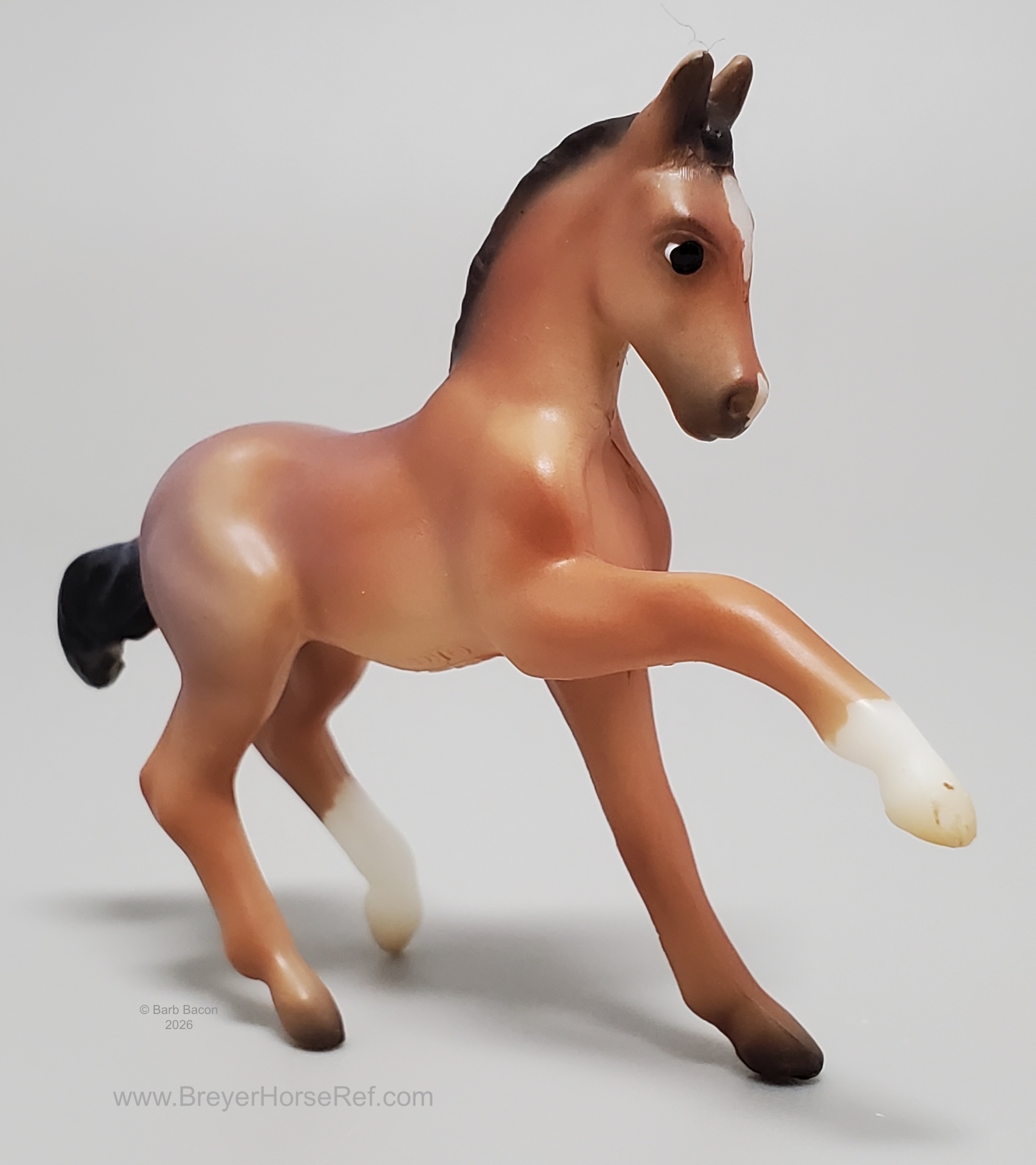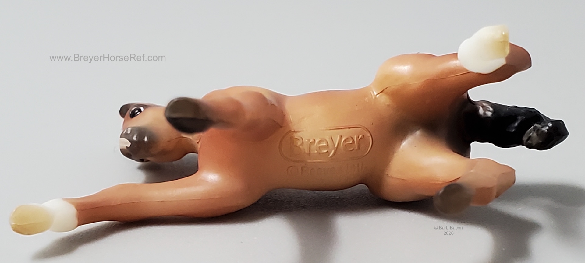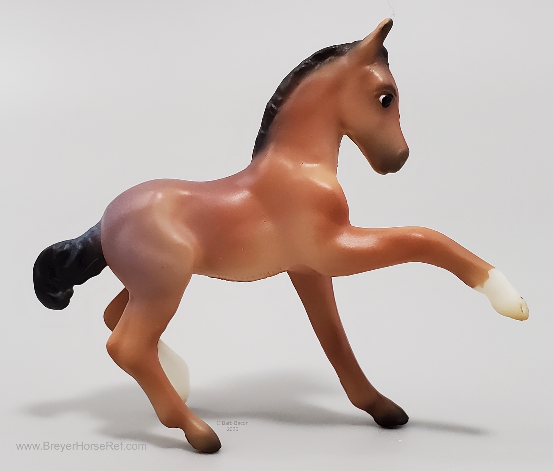 "A delightful pair of Mustangs is joining the 2026 Stablemates Club lineup! Bay roan stallion Arroyo is father to frisky filly Baja, who perfectly emulates her sire's personality. Arroyo's detailed coat includes dark "battle scar" markings from a lifetime of defending his herd, and Baja is painted as an accurate "baby" bay roan." www.breyerhorses.com.
