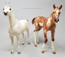 First Release on this mold, in 1/6 scale, and measuring 10" at the eartips. Three different Red Dun Pinto patterns were available. The most common was a Frame Overo (about 65%), then a Minimal Overo (around 17%) and a Sabino (around 17%). These were shipped randomly. In 2015, there was a button made of Camila. On the 2016 Retired List, but still shown in the 2016/2017 catalog.