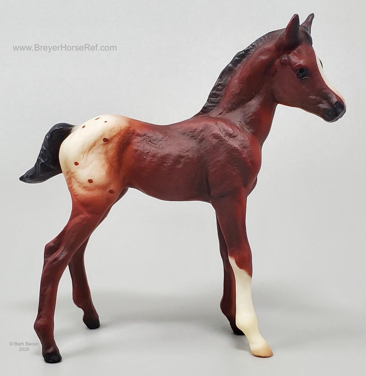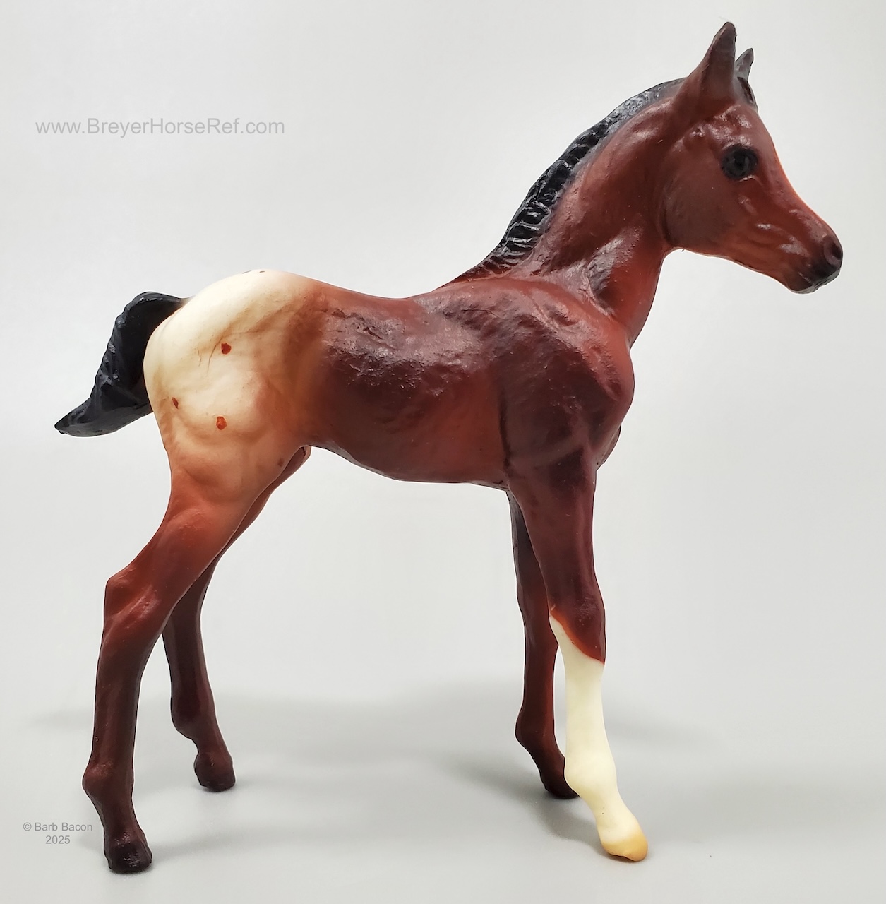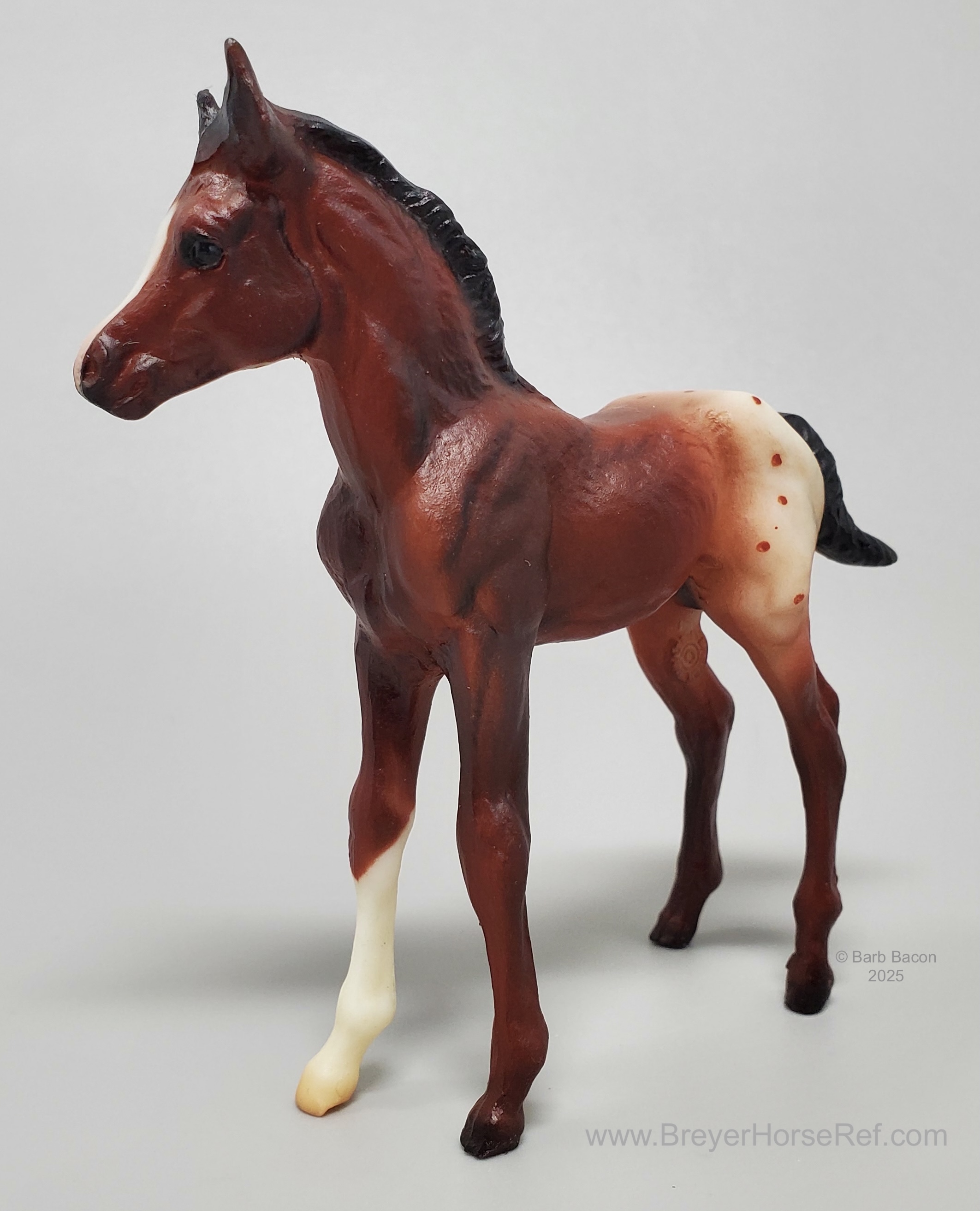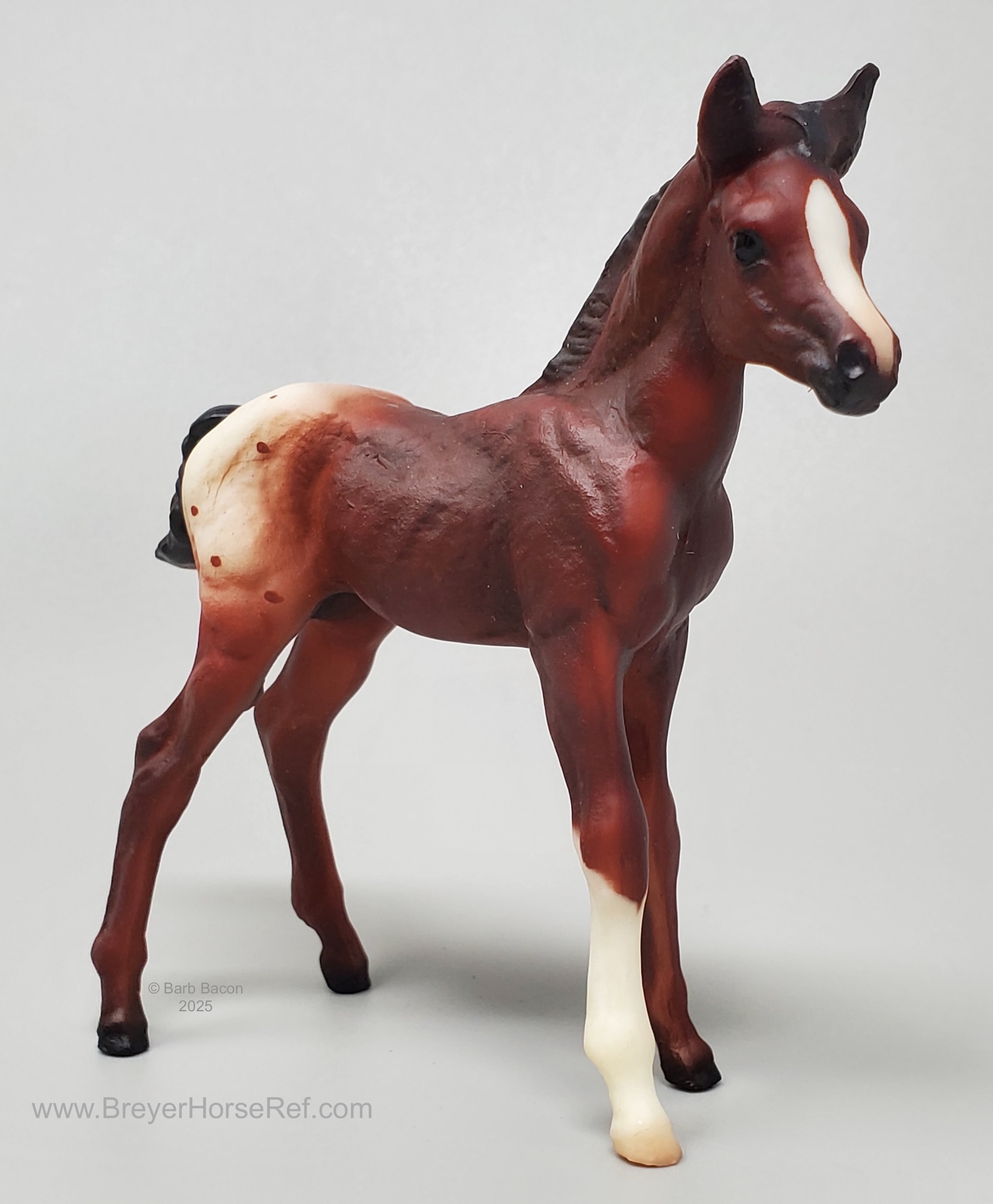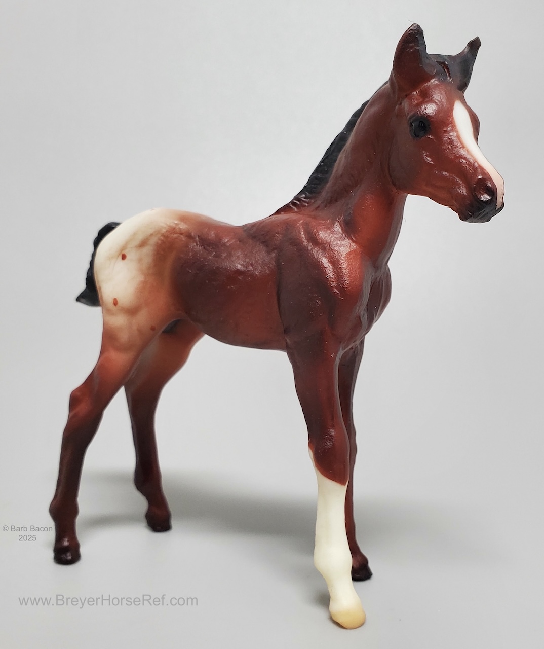This set included a chestnut pinto Quarter Horse foal and bay blanket appaloosa Mustang foal. On the 2004 Retired List.