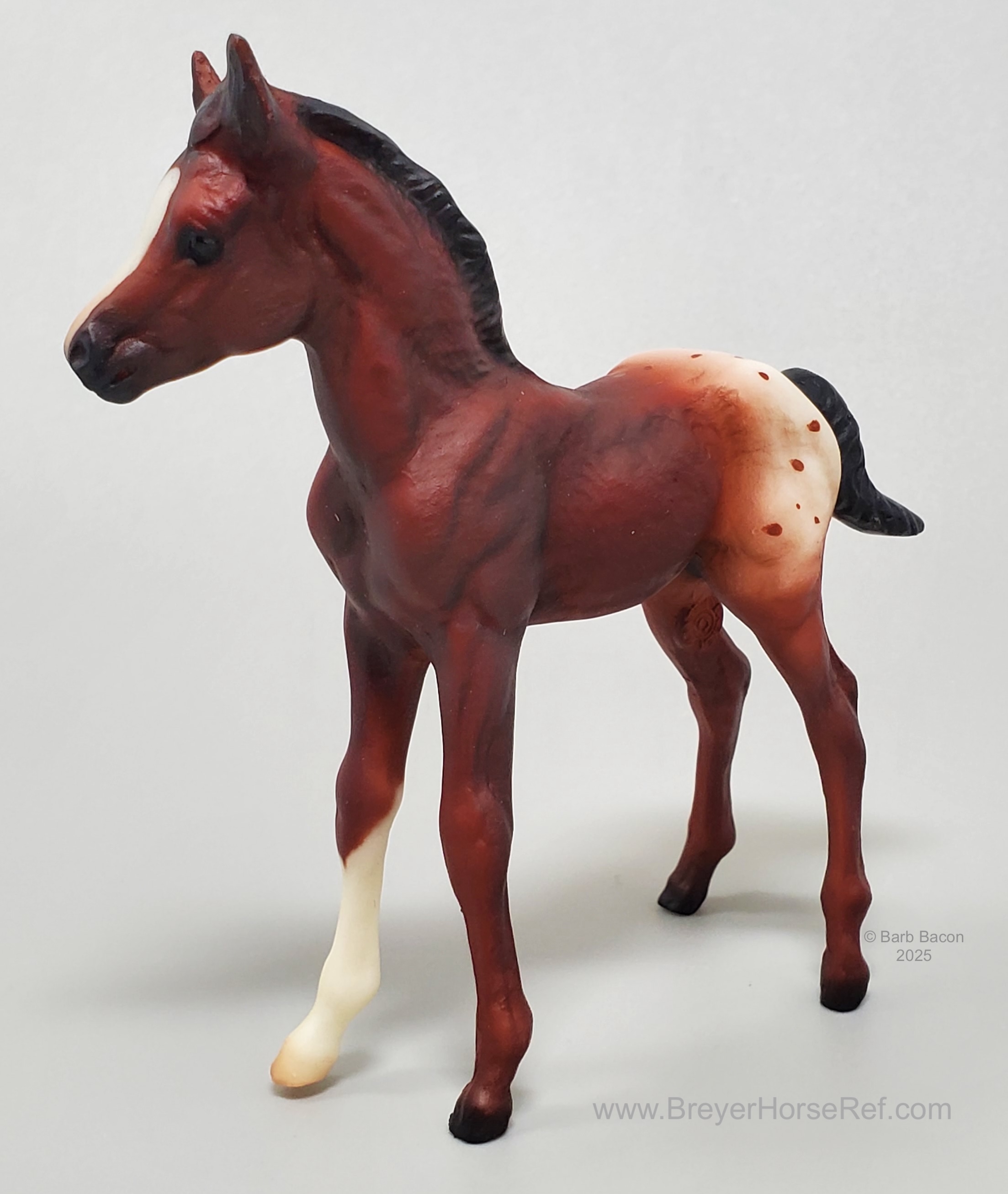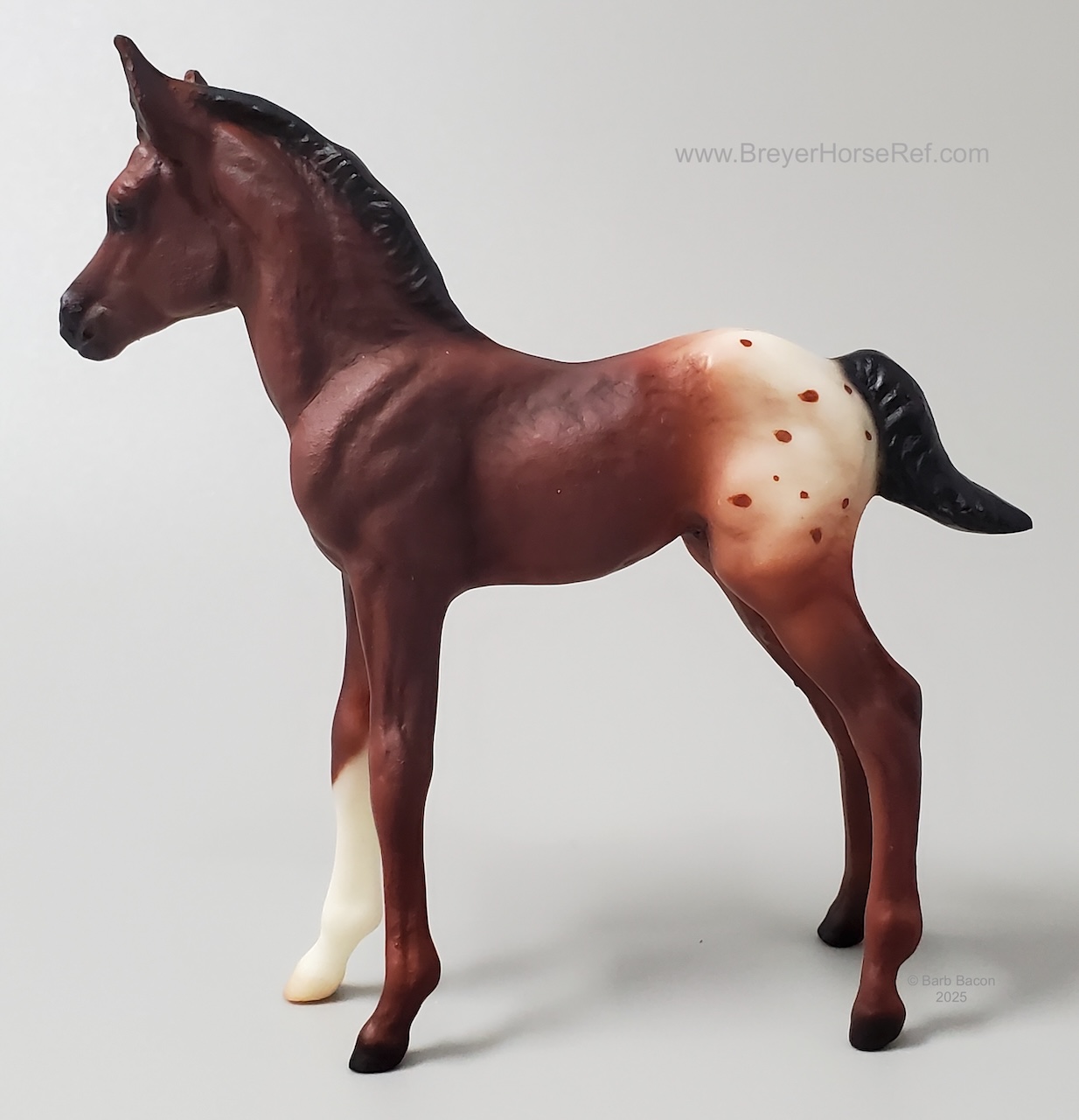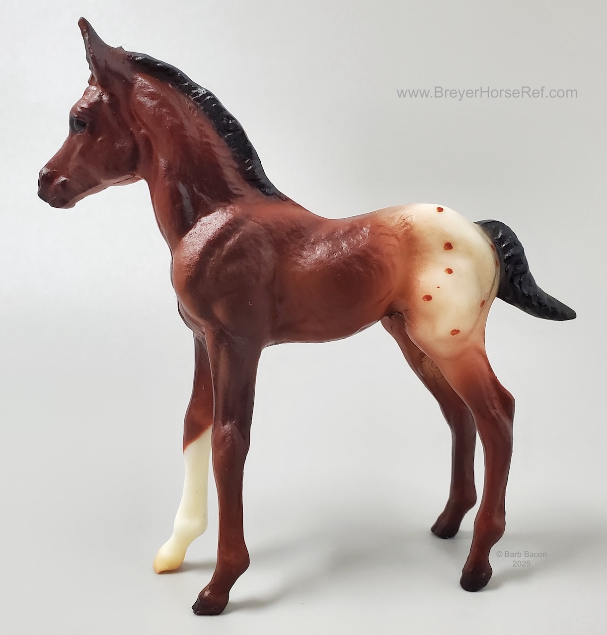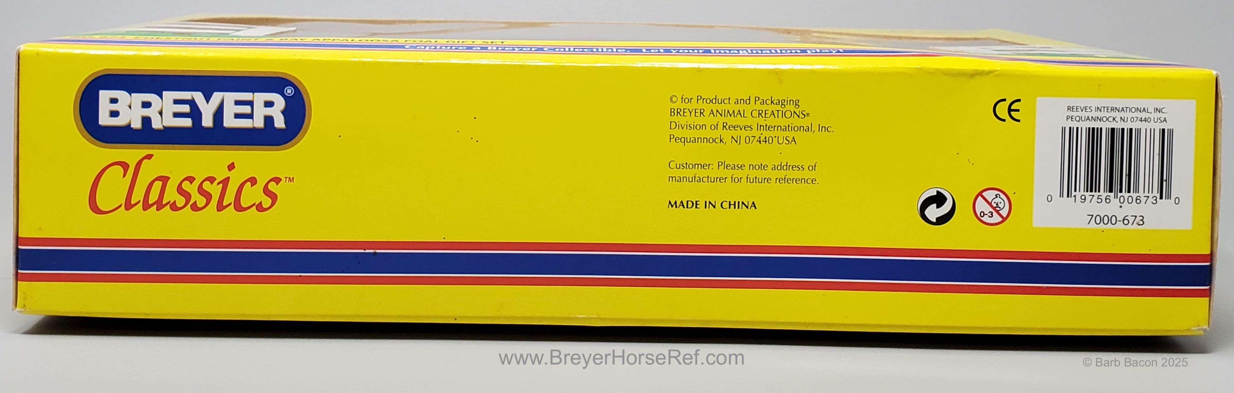 This set included a chestnut pinto Quarter Horse foal and bay blanket appaloosa Mustang foal. On the 2004 Retired List.
