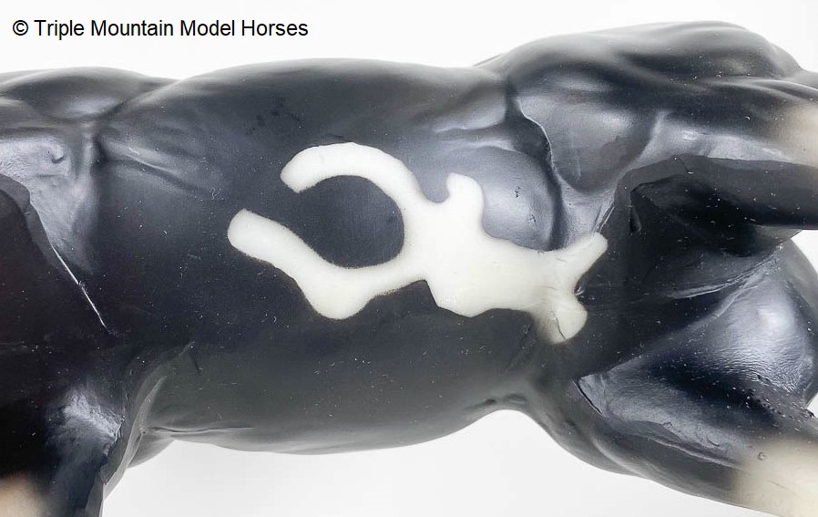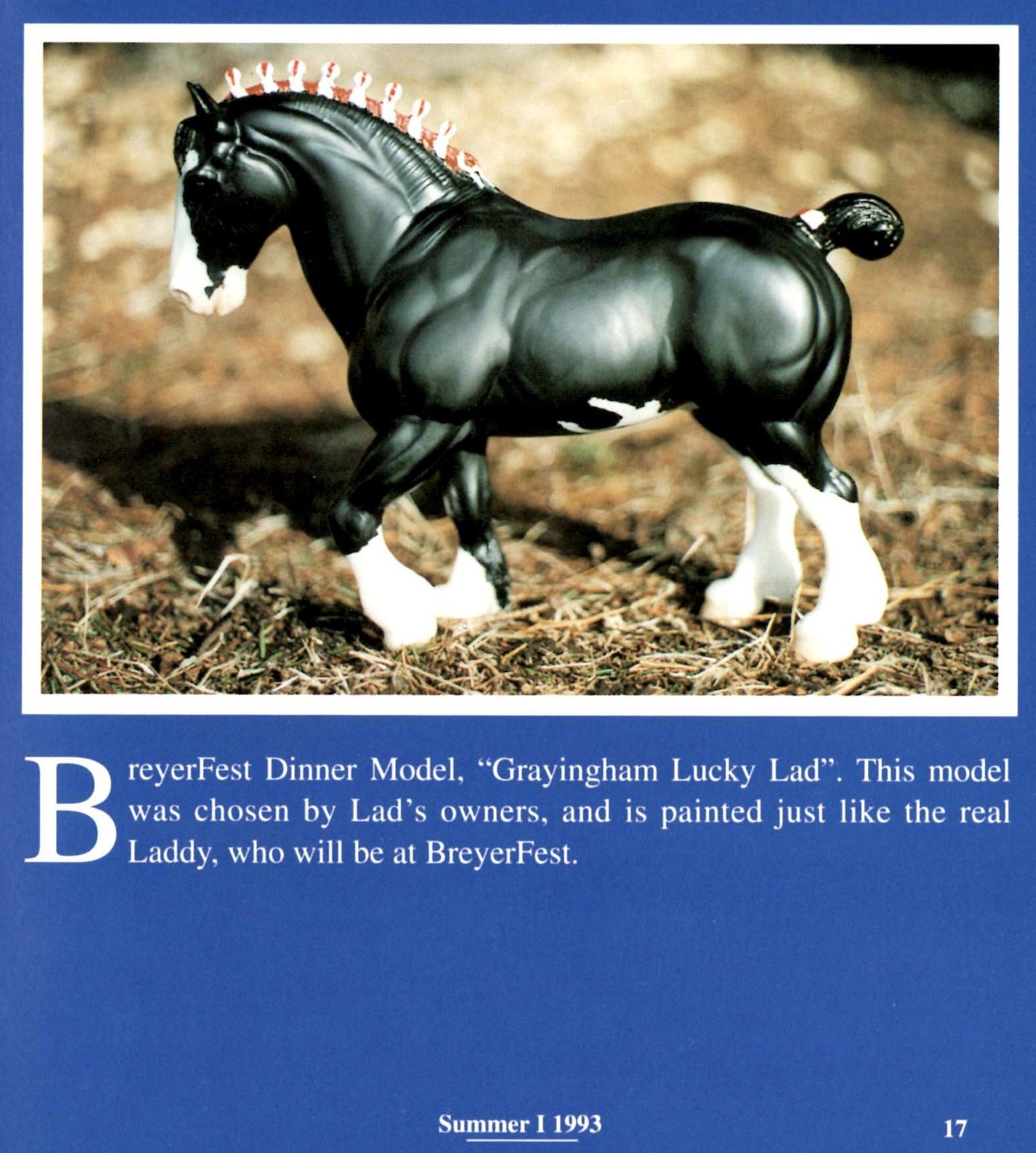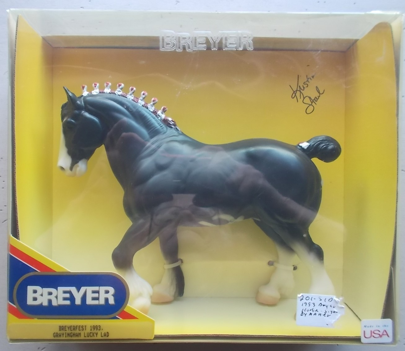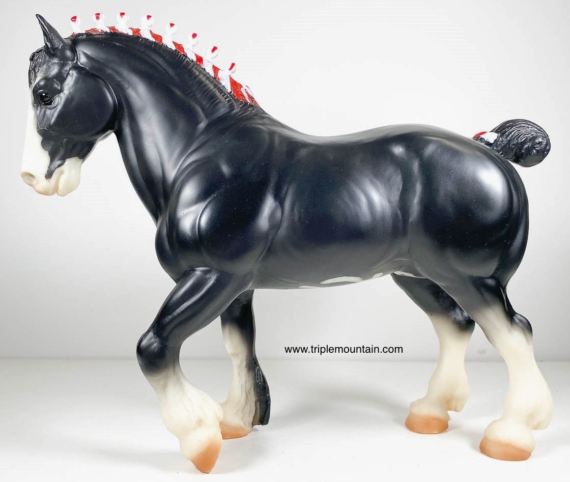 BreyerFest Dinner Model. Alternating red and white bobs and a white tail ribbon with red center. Estimated 1400-1500 models made. Some models were signed by the horse's owner at the 1993 BreyerFest.