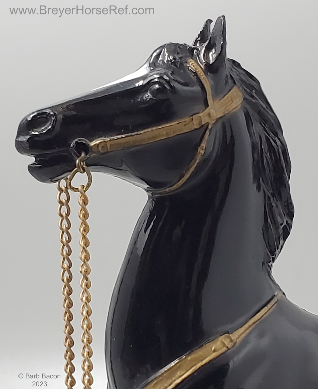 Typically the models with silver trim are also the models with the white tail tip, and are referred to as the Black Beauty Prancers. See separate record.