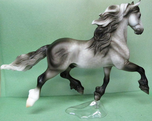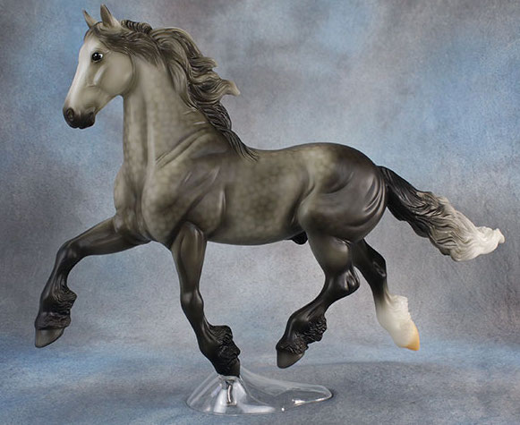 Gettysburg's dark dapple grey coat pays homage to the many hues of grey present in Gettysburg National Military Park: from the stone monuments and memorials, to the iron artillery. His belly is marked with "Gettysburg 2018," and he comes with a clear base." www.breyerhorses.com. Sixth in the series.