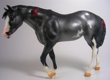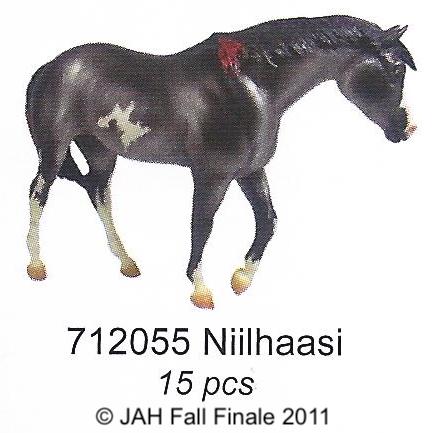 "Niilhaasi - The Miccosukee Seminole world for 'Moon' - is a stunning grullo sabino with red and black feathers, rich in Florida's Native American history, Limited to 15 pieces." www.breyerhorses.com. 2011 Limited Edition Stamp on belly.