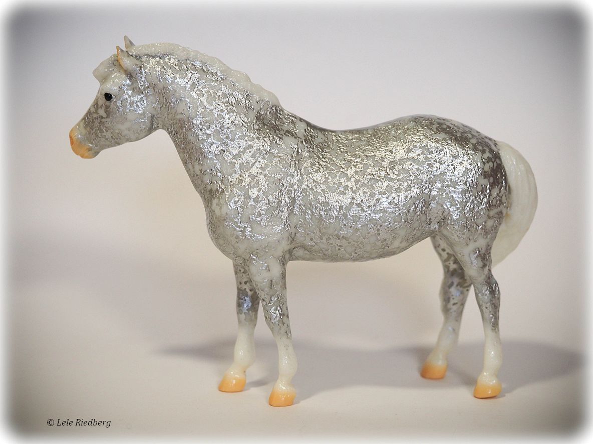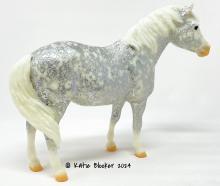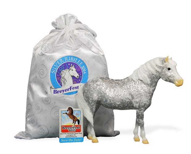 25th Anniversary BreyerFest 2014 Stamp on belly. Glossy Silver Filigree Decorator.