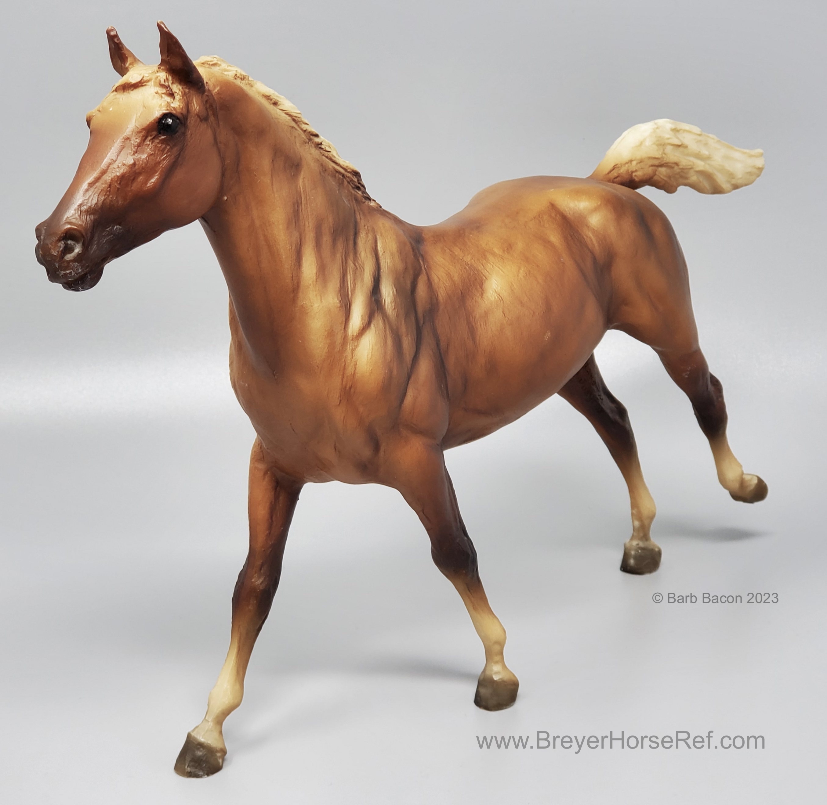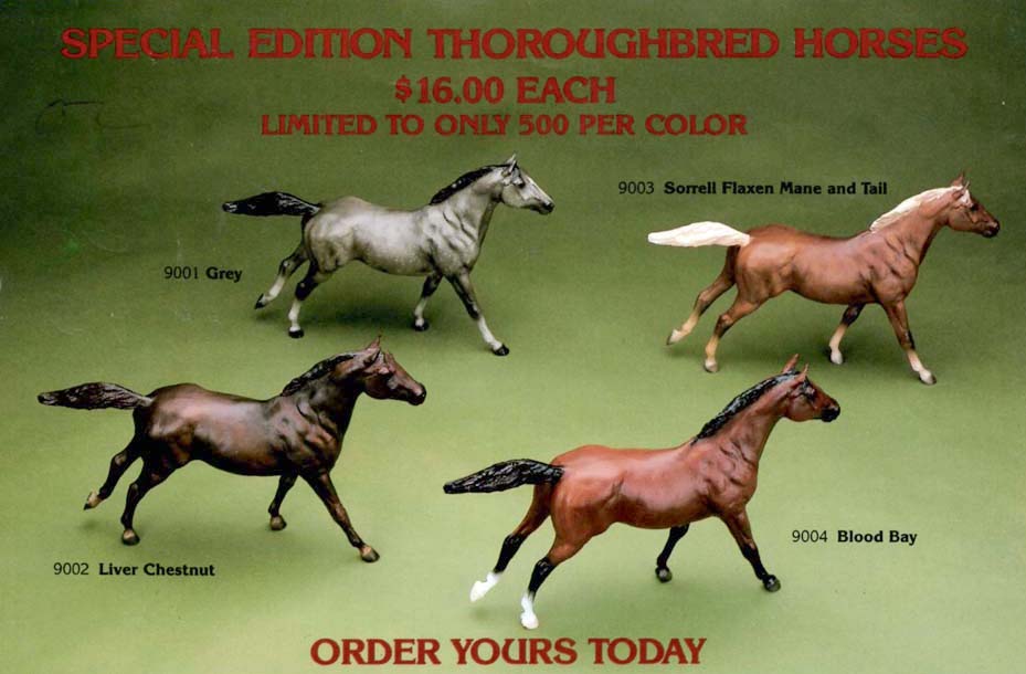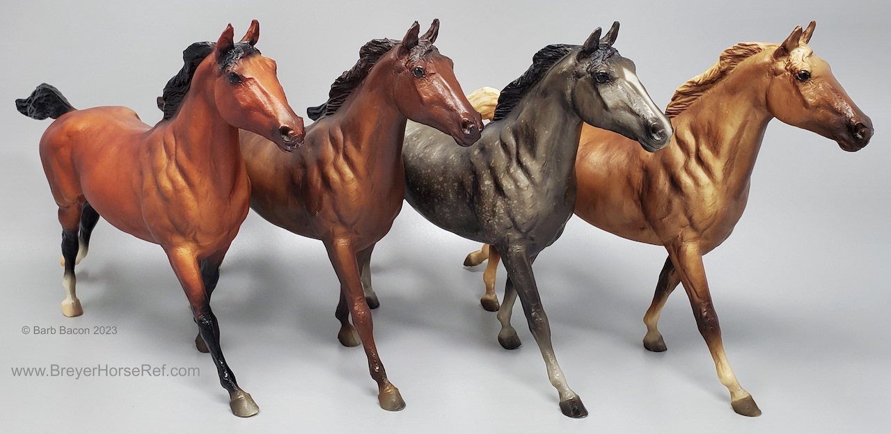 500 models made for Your Horse Source. Model could be purchased separately or in a set with a Dapple Grey, Liver Chestnut, Blood Bay and Sorrel Phar Lap. Models from this run have been known to shrink.