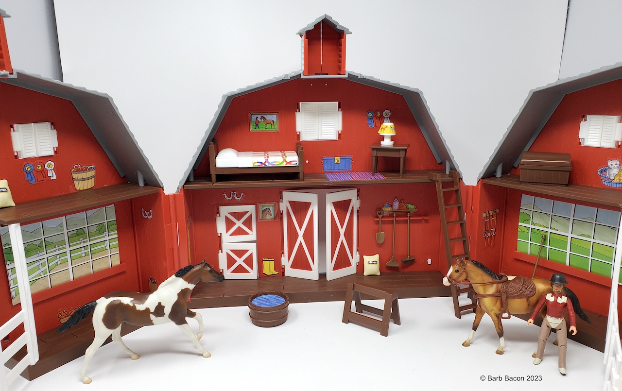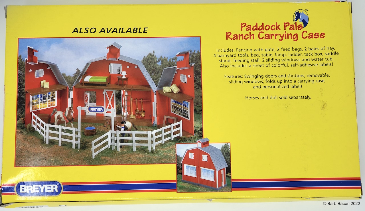 This model has been included with the Paddock Pals Ranch Carrying Case #1613. This case was actually retired in 2002 and did not originally come with models or dolls; however, it was available during the next couple of years (2003-2005) and included overstock models. See the 'Paddock Pals Ranch Carrying Case' record for more details on the accessories.