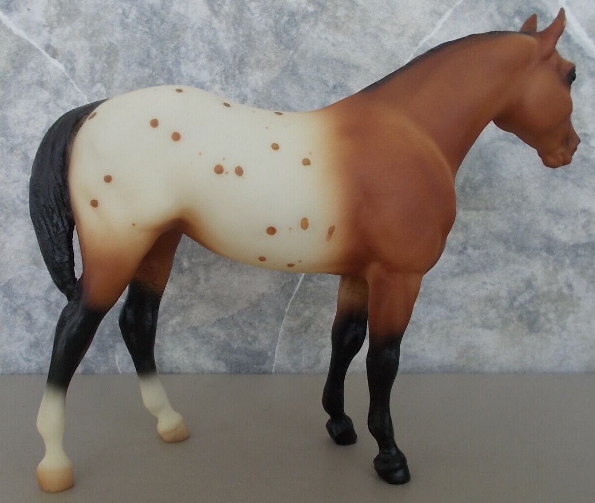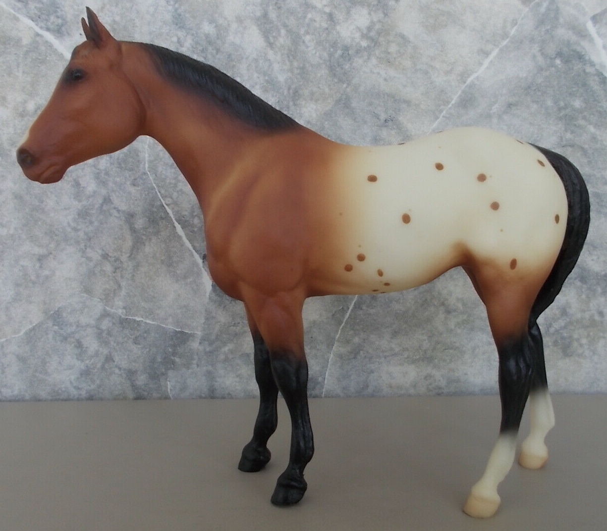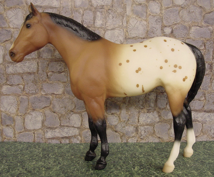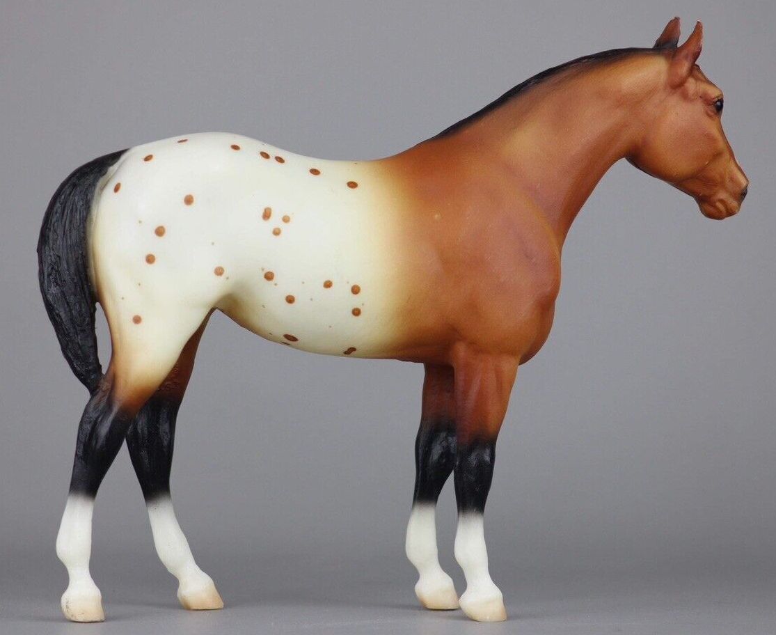 Set included a matching Bay Blanket Appaloosa Quarter Horse Yearling, Adios and Phantom Wings. An uncommon variation is 4 stockings. JC Penney Exclusive.