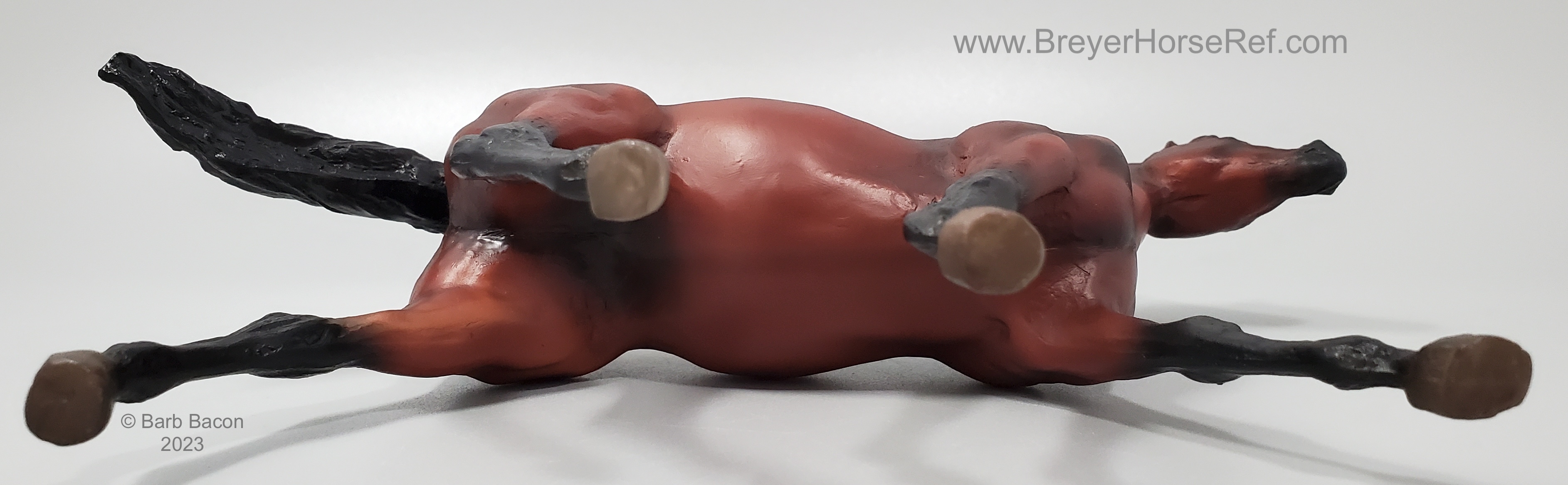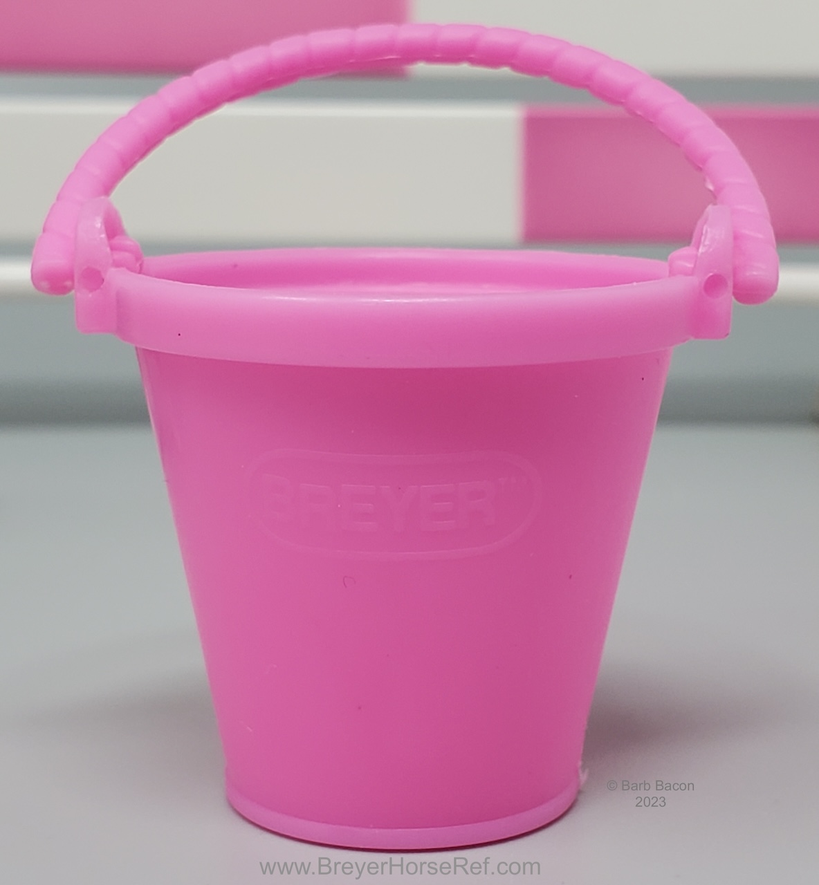 Set included a red bay (no white markings) Ruffian, Shetland Sheepdog, doll, English saddle, saddle pad and bridle, pink and white striped jump, tack trunk, trophy, 4 leg wraps, brush, water bucket, and ball and 2 cones.