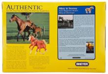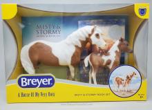 "Misty and Stormy are together again along with the book that introduced them to the world. Since the publication of Misty of Chincoteague in 1947, Misty has become one of the most beloved equines in children’s literature. Marguerite Henry’s novel weaves a true story with warmth and imagination. The result is an exciting tale about children’s love for horses and the real wild ponies that still roam Chincoteague Island off the Virginia coast. 1:9 scale mare and foal set includes a paperback copy of Marguerite Henry's novel Misty of Chincoteague." www.breyerhorses.com.