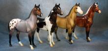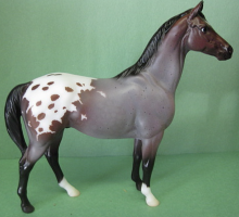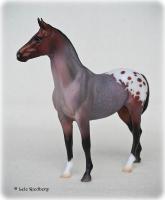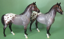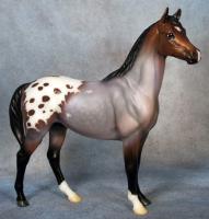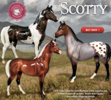 "Breyer Collector Club members had the opportunity in July 2016 to view four gorgeous colors and pick their favorite. The four colors were inspired by the popular Traditional models Jazz Fusion, Fandango, Burbank and Uncalled For. Three colors were so closely tied, and the fourth also so close behind that we decided to make the top three available in a gambler's choice. The three colors for Scotty include glossy dark bay tobiano, glossy silver bay with chrome and a lovely bay roan blanket appaloosa in matte finish." www.breyerhorses.com.