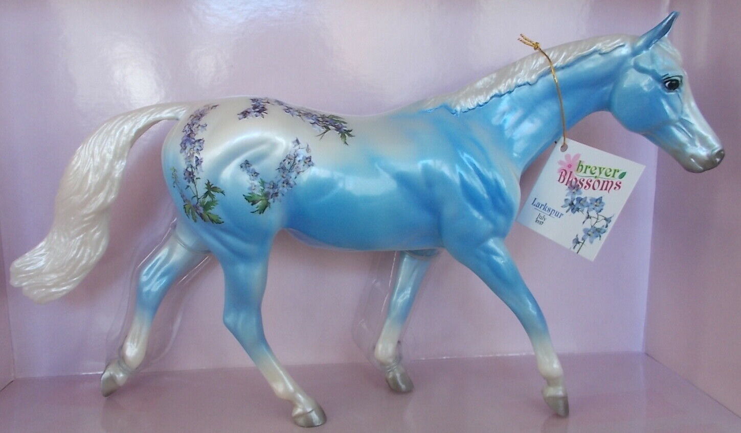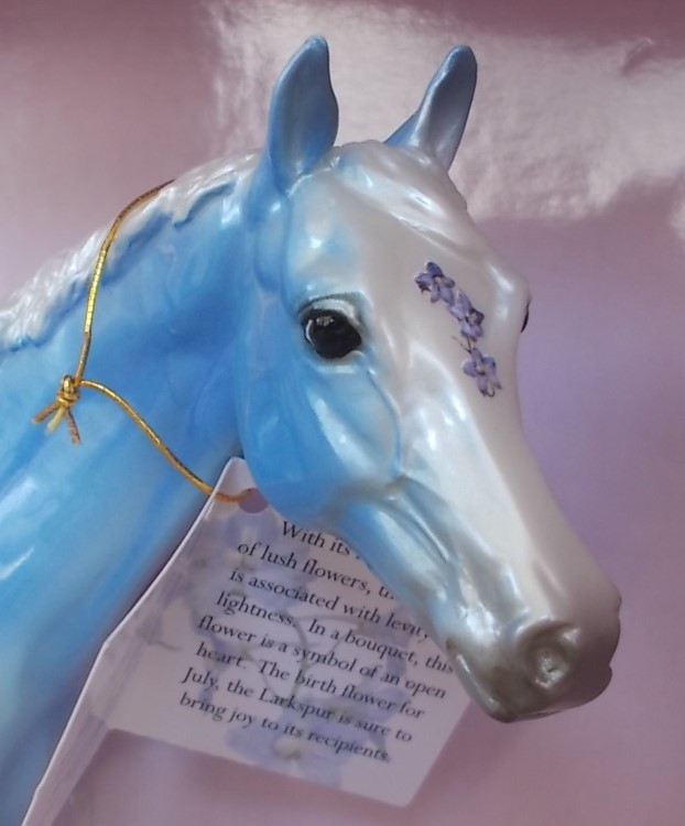 "The gorgeous blue Larkspur is July's flower. Also known as the Delphinium. The Larkspur is associated with big-heartedness, fun, lightness and levity." www.breyerhorses.com.
