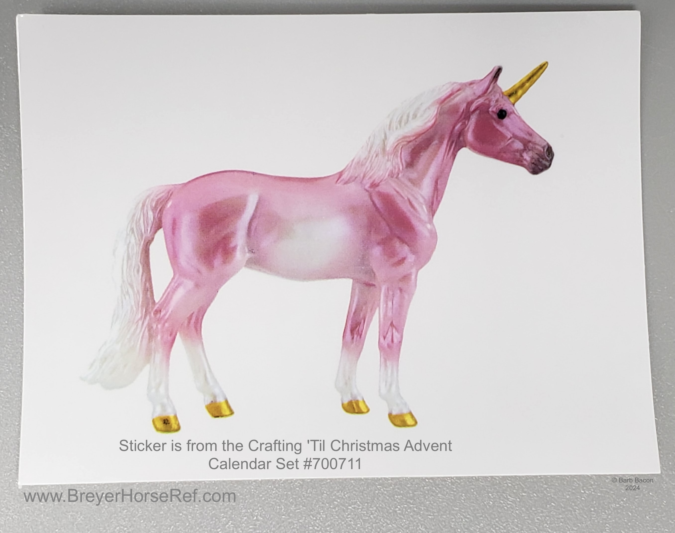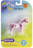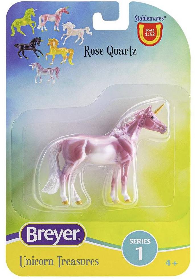 "With their gemstone hues, these precious unicorns are sure to become treasured additions to your herd! There are six different styles, each one with its own beautiful gem color! Quartz comes in many varieties. Our Unicorn Treasure is wearing rose quartz, featuring a delicate pink color coat." www.breyerhorses.com. #6928 is the assortment number for these gemstone unicorns. On the 2024 Retired List.