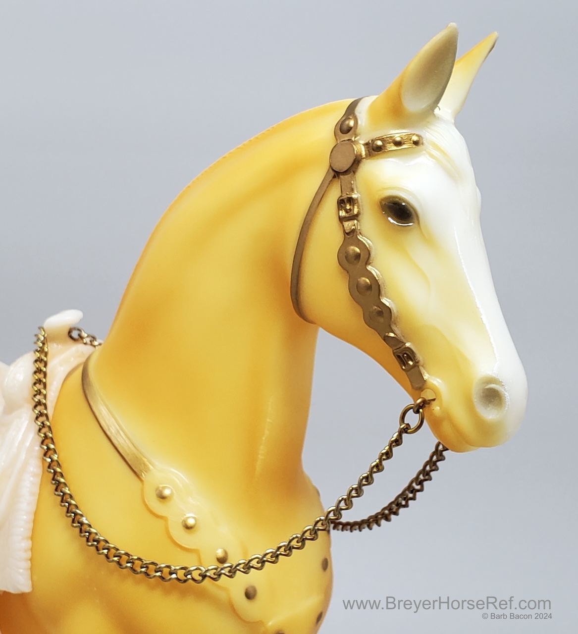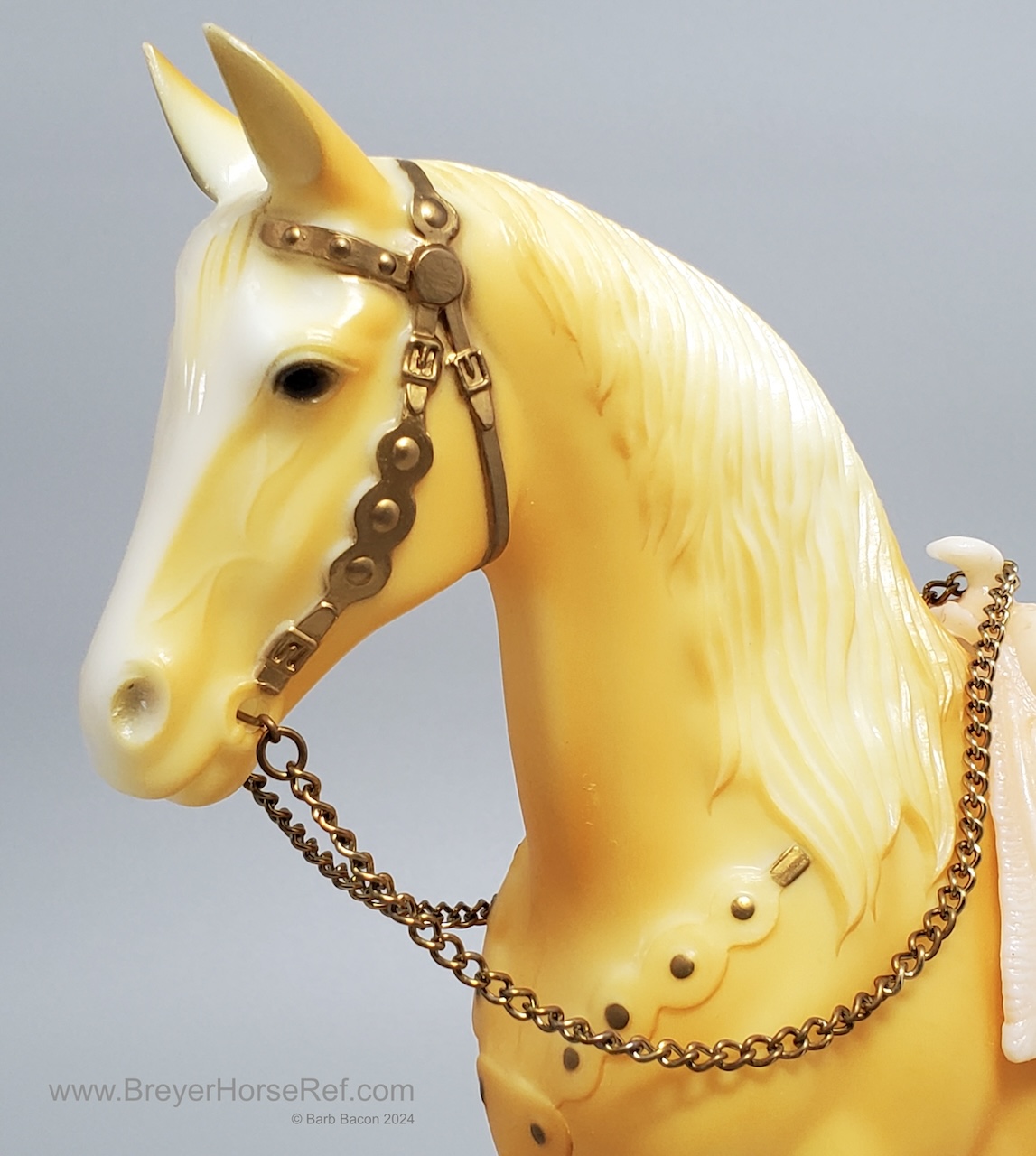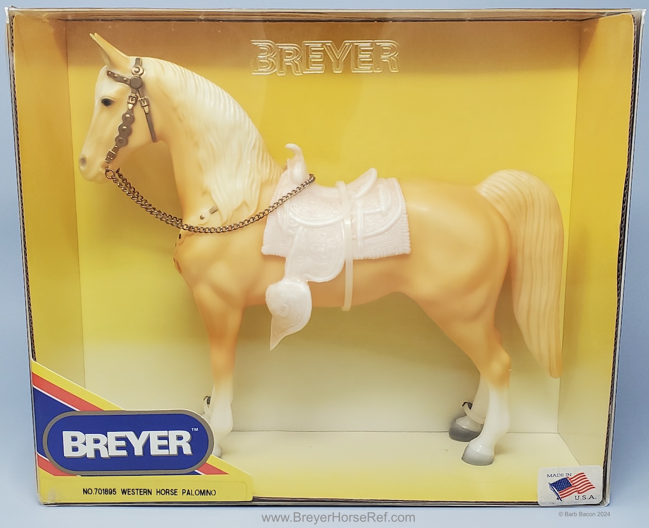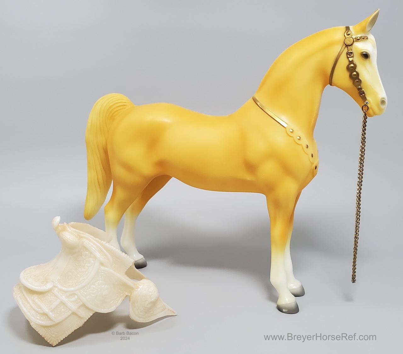 Palomino with bald face and four stockings with white or palomino shaded mane and tail. This model is identical to later releases of #57 but updated with a ’95 stamp on the inner back right leg. Some models were released without the '95 stamp and are indistinguishable from the regular run.