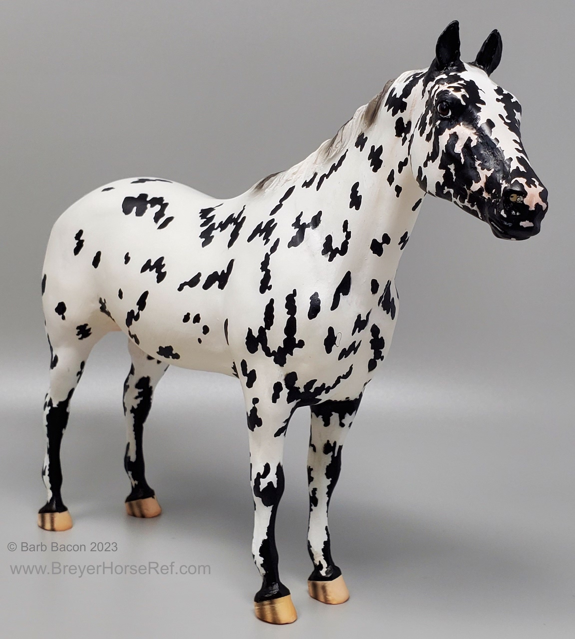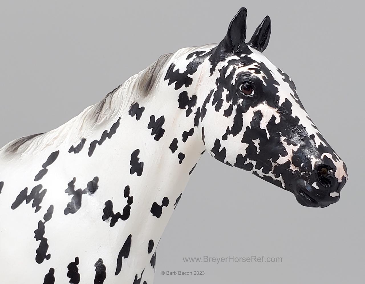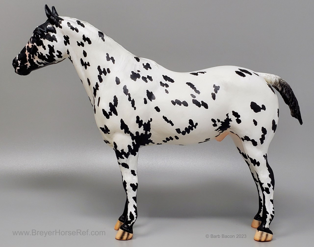 "The first release of 2022 - Cooper! Inspired by the original Brenda Breyer Gift Set from 1980, Cooper includes an era-accurate bareback saddle and bridle set. This vintage throwback is paired with an ultra-modern leopard appaloosa paint job, bringing some new life into the beloved Appaloosa Performance Horse. Cooper includes a certificate of authenticity booklet and retro-style box." www.breyerhorses.com.