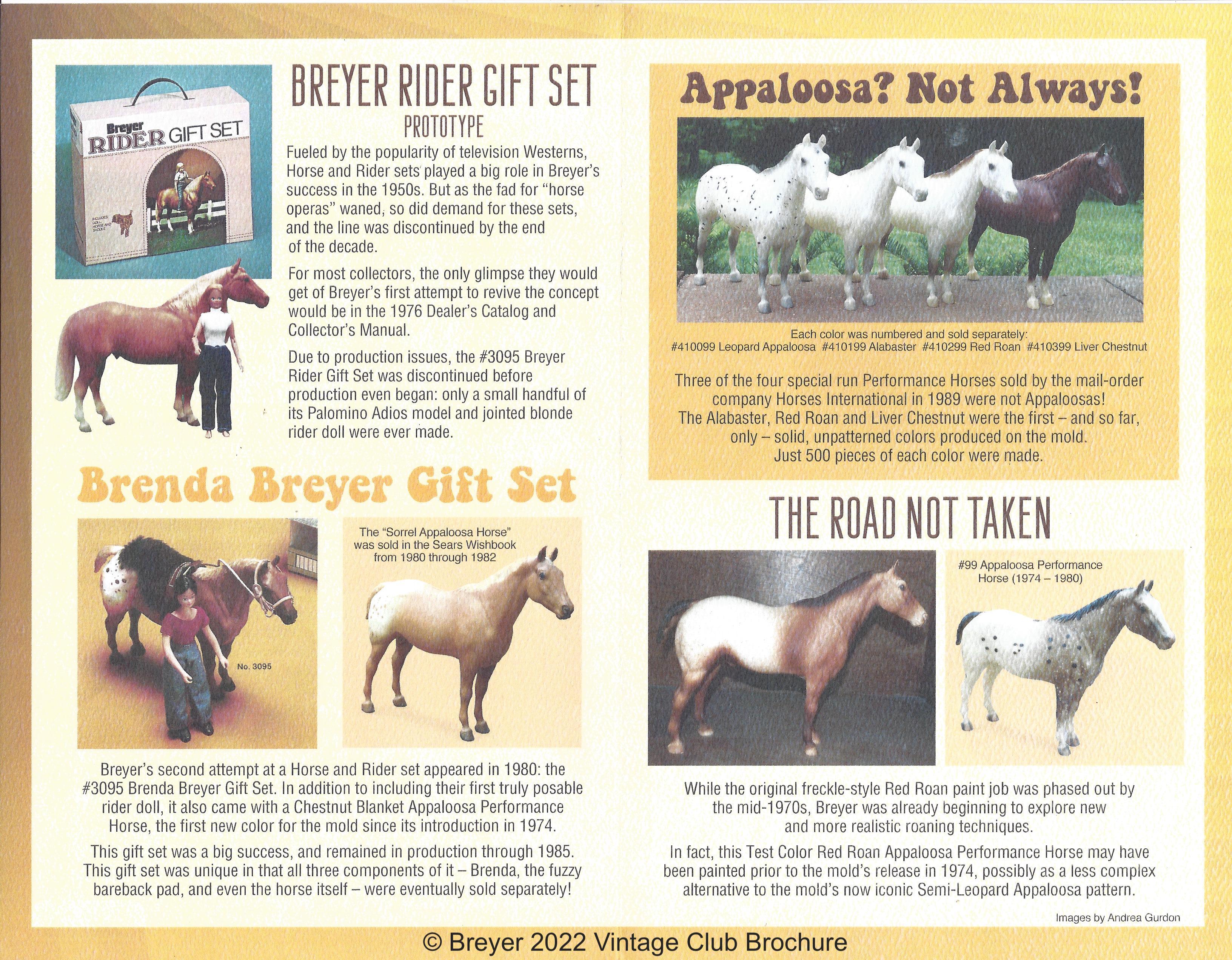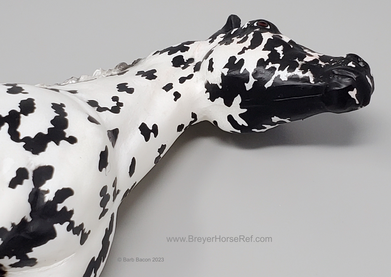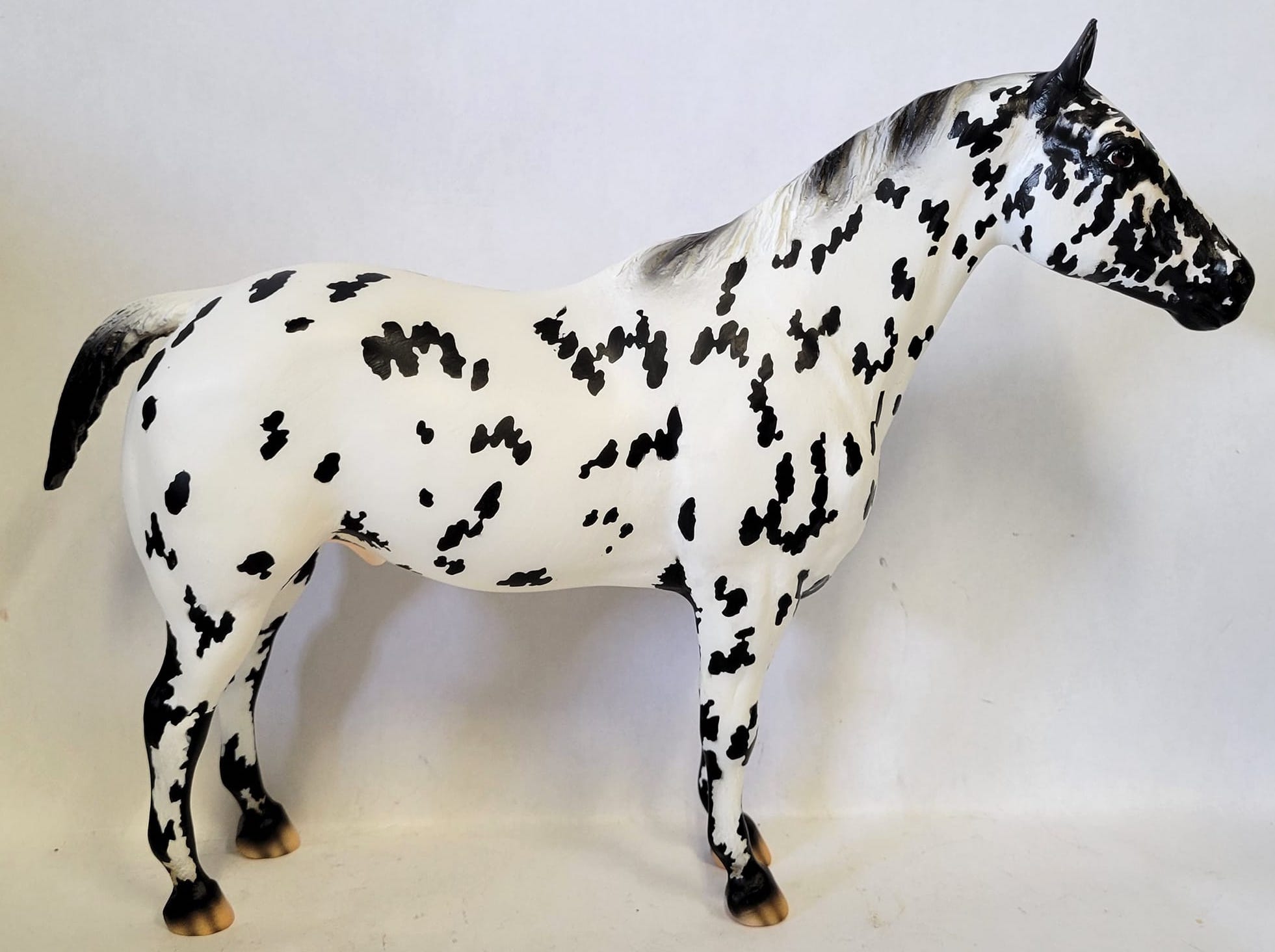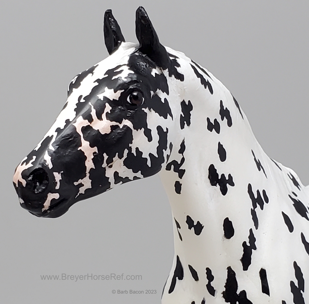 "The first release of 2022 - Cooper! Inspired by the original Brenda Breyer Gift Set from 1980, Cooper includes an era-accurate bareback saddle and bridle set. This vintage throwback is paired with an ultra-modern leopard appaloosa paint job, bringing some new life into the beloved Appaloosa Performance Horse. Cooper includes a certificate of authenticity booklet and retro-style box." www.breyerhorses.com.
