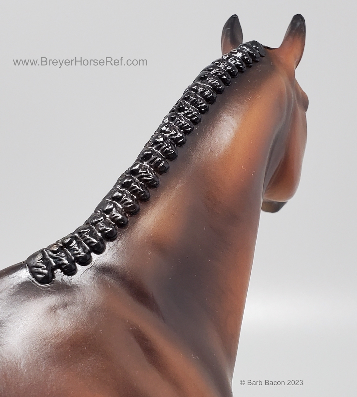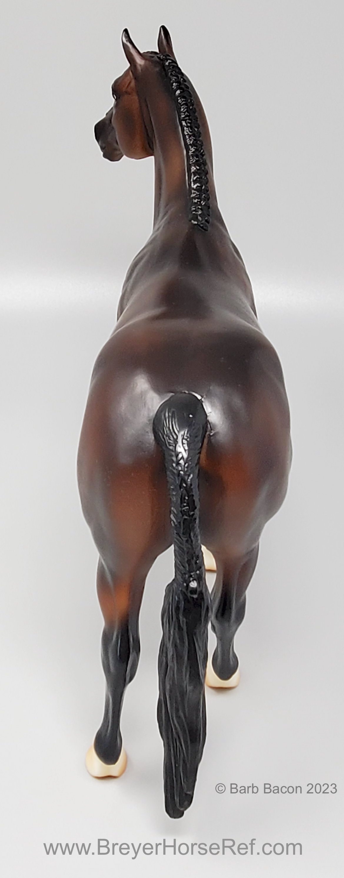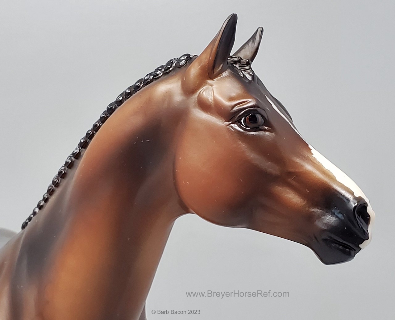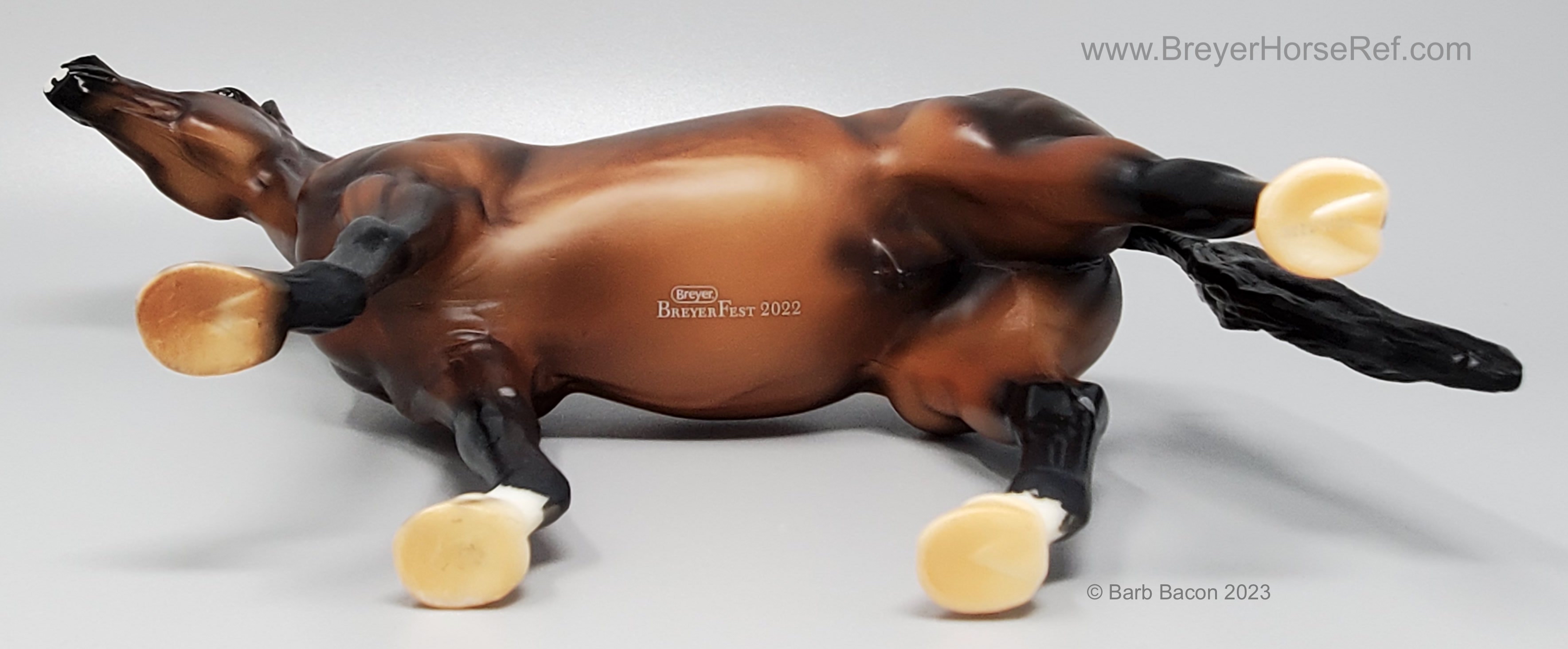 At BreyerFest this summer, we are so excited for fans to meet Chablis, a multi-champion Württemberger hunter. He has been immortalized as one of BreyerFest’s Limited Edition Traditional models, available to all BreyerFest: Prost! ticket holders, whether you’re joining us in person or online. Done on Susan Carlton Sifton’s Warmblood Stallion, mold #711, Chablis is a stunning dark bay with dappling and three white socks. Chablis is a Württemberger gelding who knows he’s turning heads in the hunter ring for more than one reason. The stunning dark bay with an equally stunning jump is owned by Libertas Farm, LLC, and ridden by Kelly Tropin. As a young horse Chablis showed promising talent and a natural affinity towards the hunters. Together the pair has won numerous championships and high score awards in the 3’6 Amateur Owner division at the National Horse Show, Pennsylvania National Horse Show, Washington International Horse Show, WCHR week at the Winter Equestrian Festival, and at the Hampton Classic. On top of his many championships, Chablis was named the 2020 WCHR Hunter of the Year. His long list of achievements prove Chablis is no stranger to the spotlight!" www.breyerhorses.com.