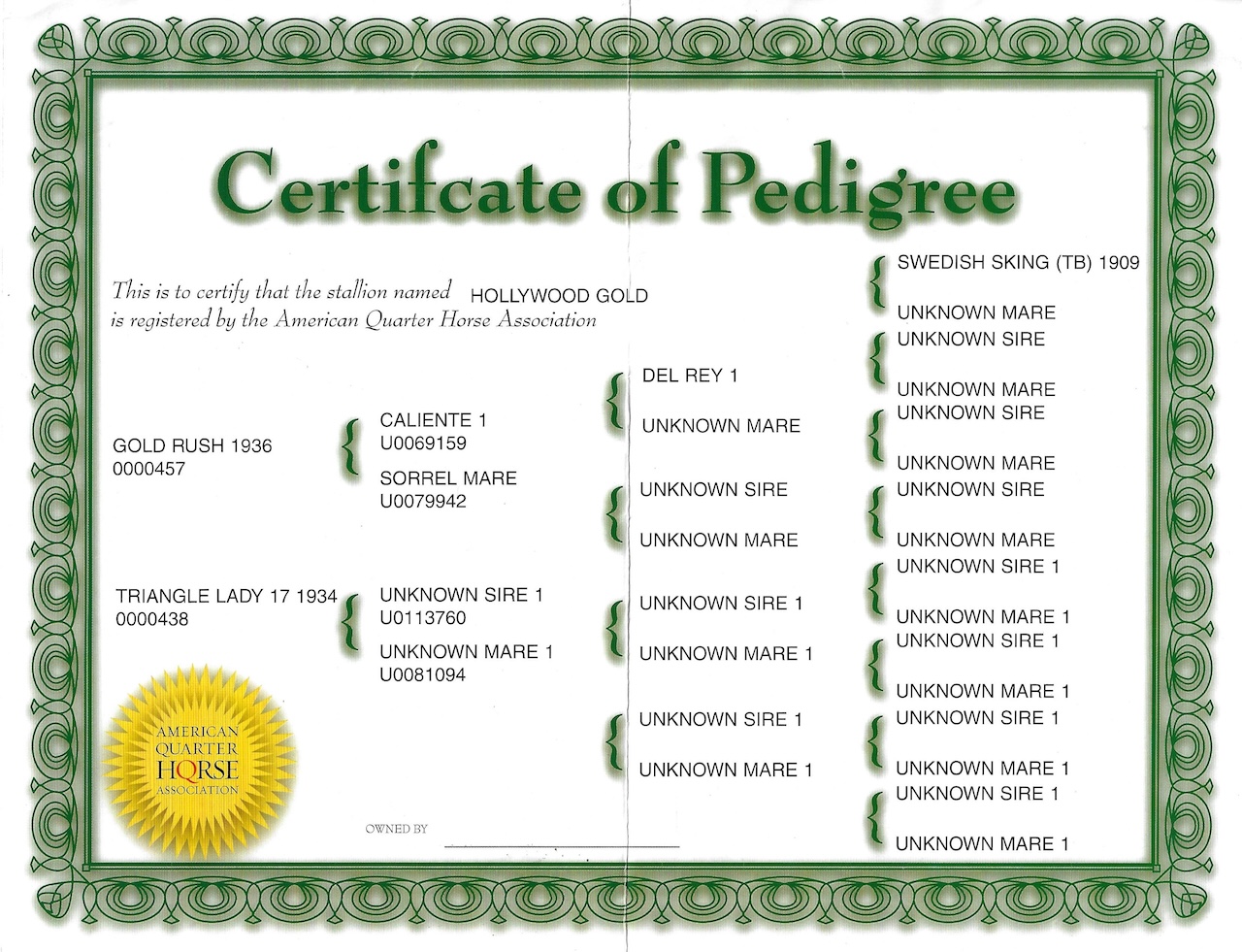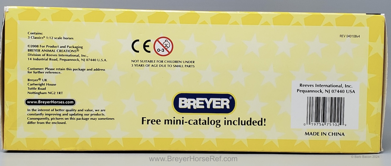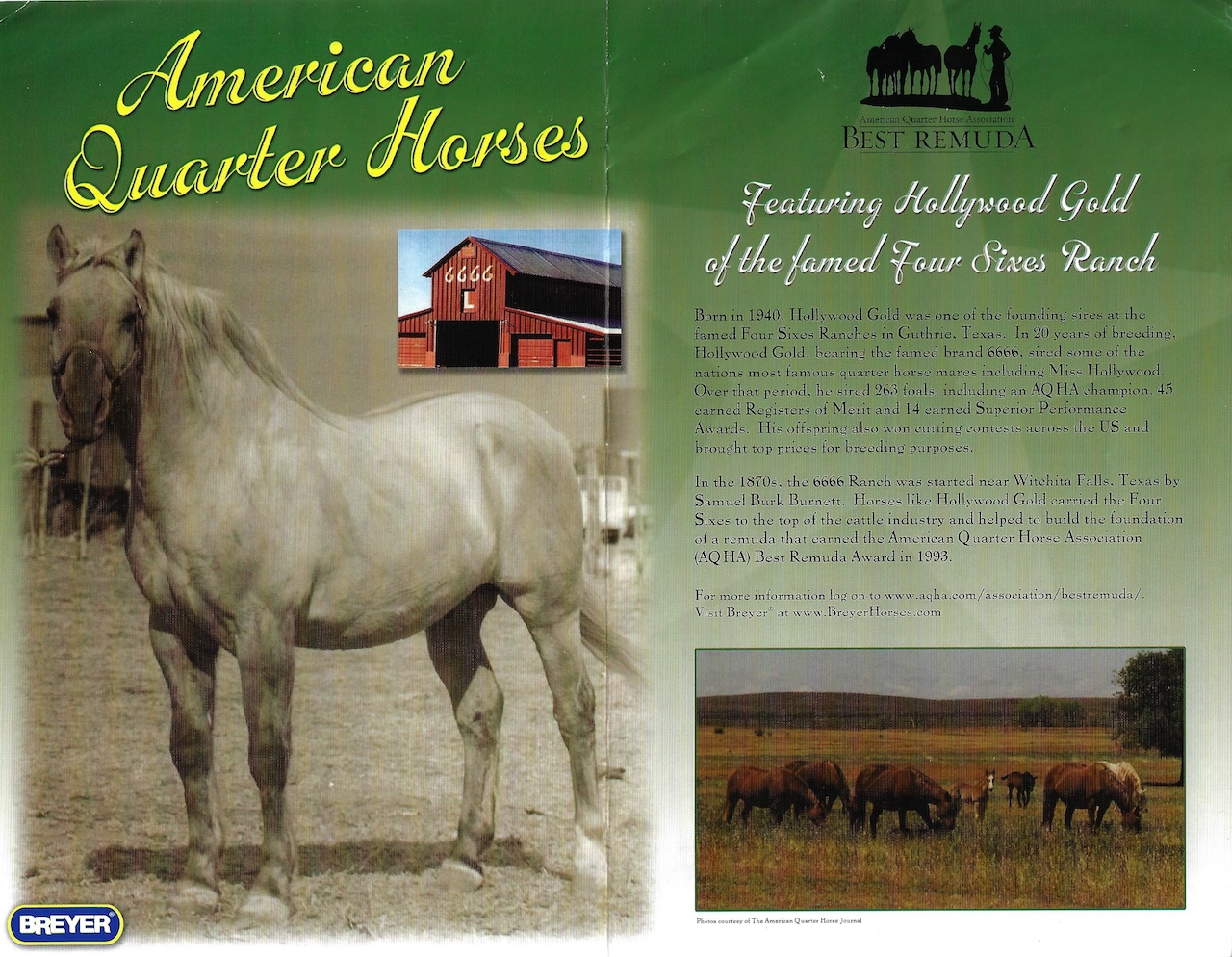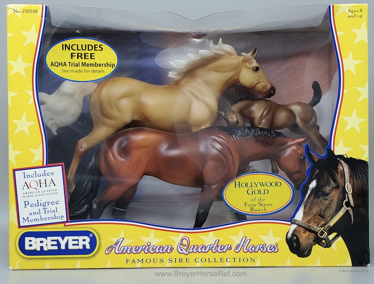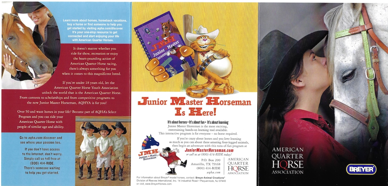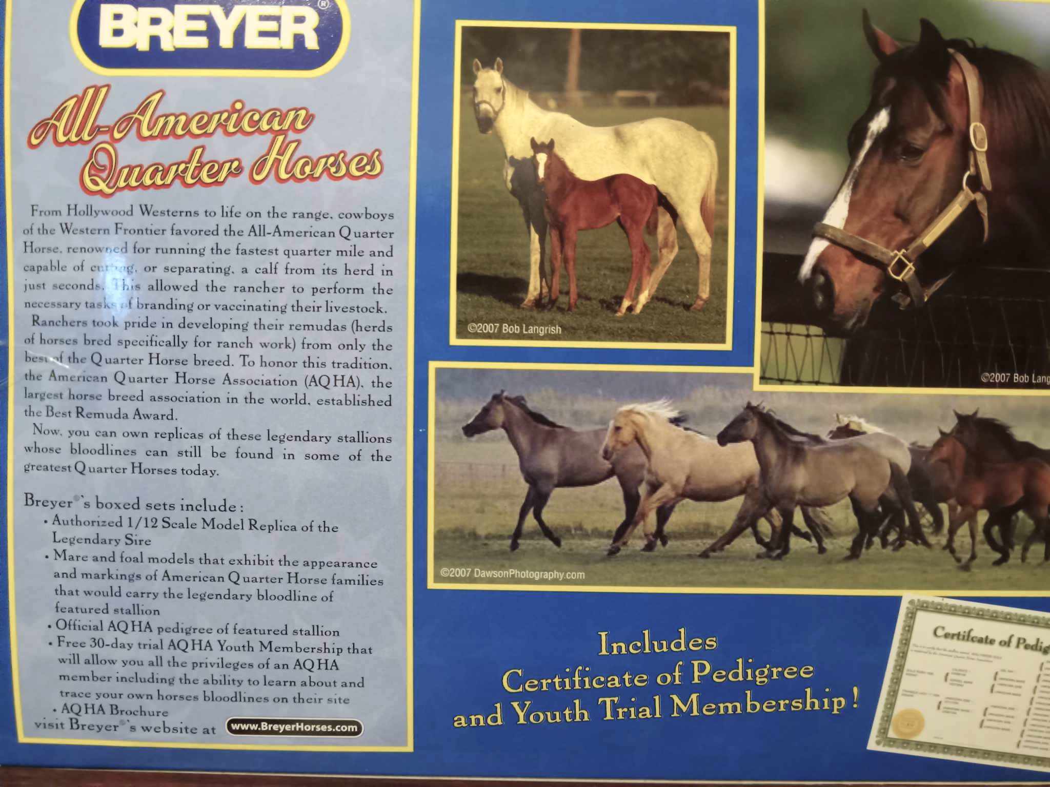 Set included a palomino dun American Quarter Horse Stallion, bay Mare and grulla Foal. Included a Certificate of Pedigree and an AQHA brochure.