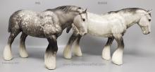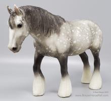 Dapple Grey with white feathers, bald face with pink nose and ears and dapples on the head and neck. Released in a set with a Black Belgian through Montgomery Ward in 1982-1983.