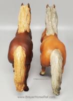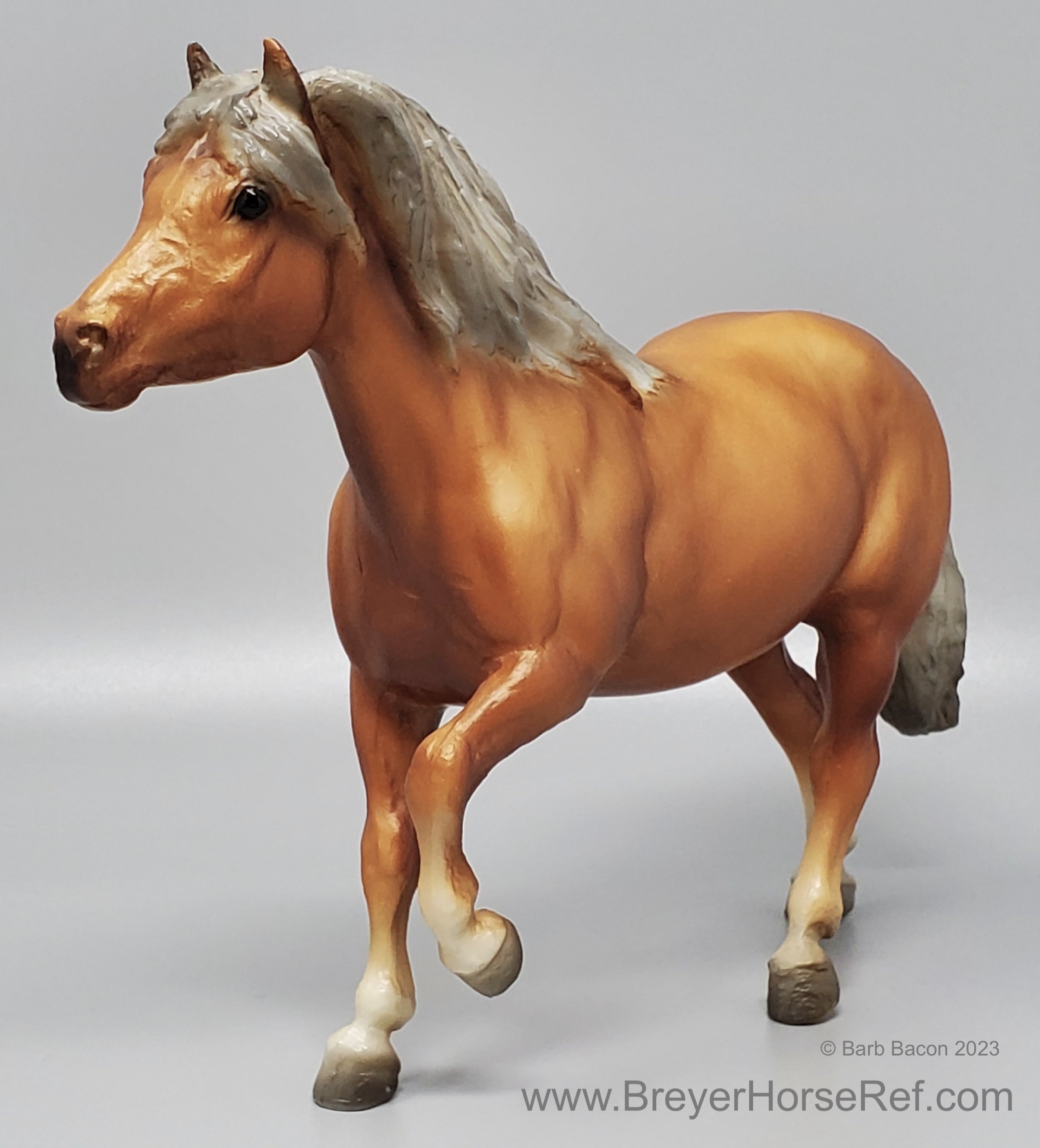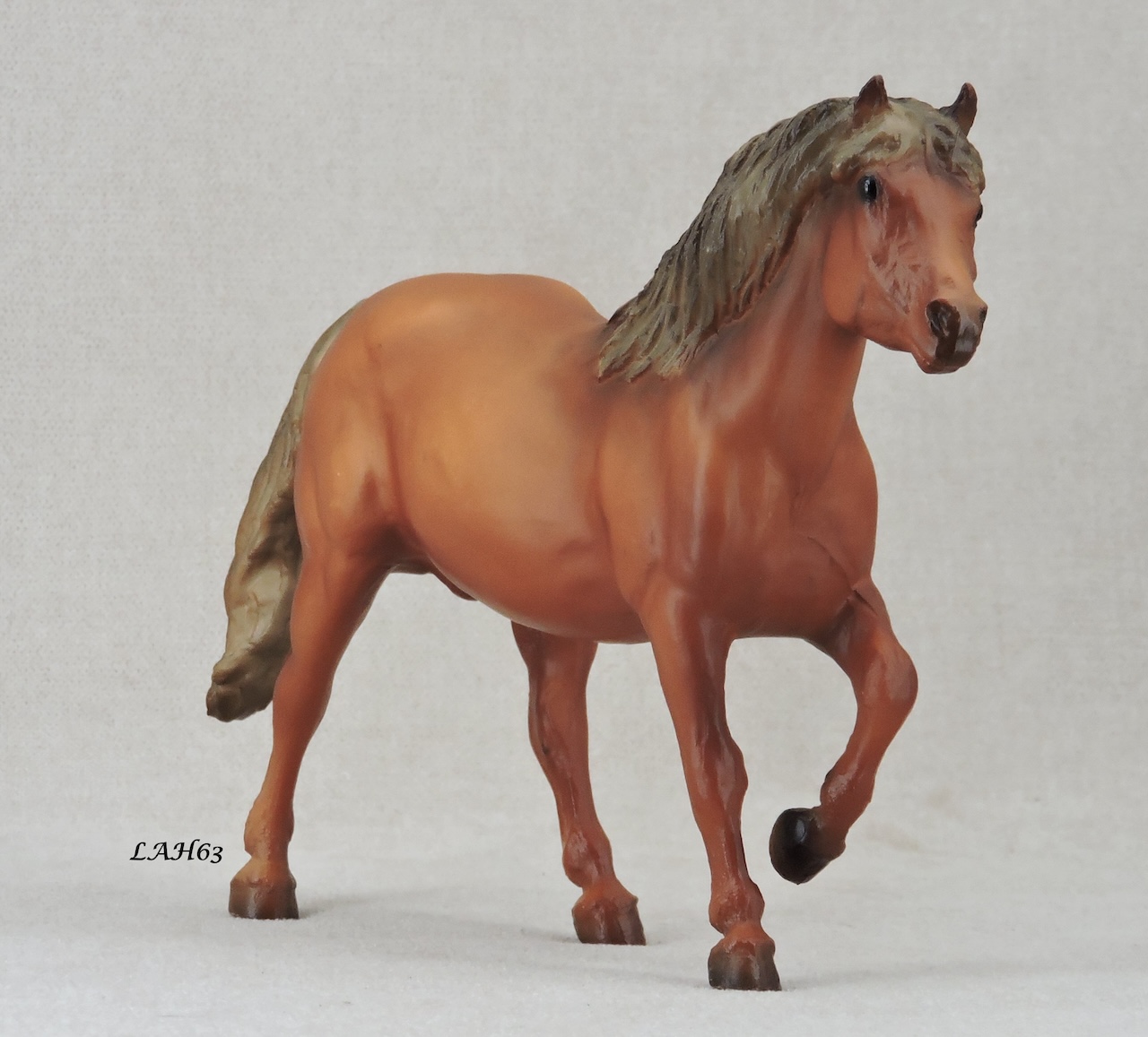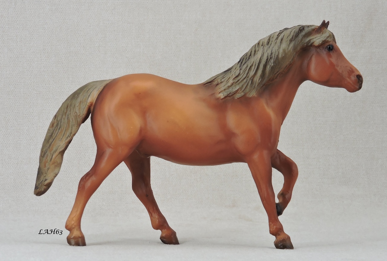 Chestnut with grey mane and tail and either four socks or no socks.