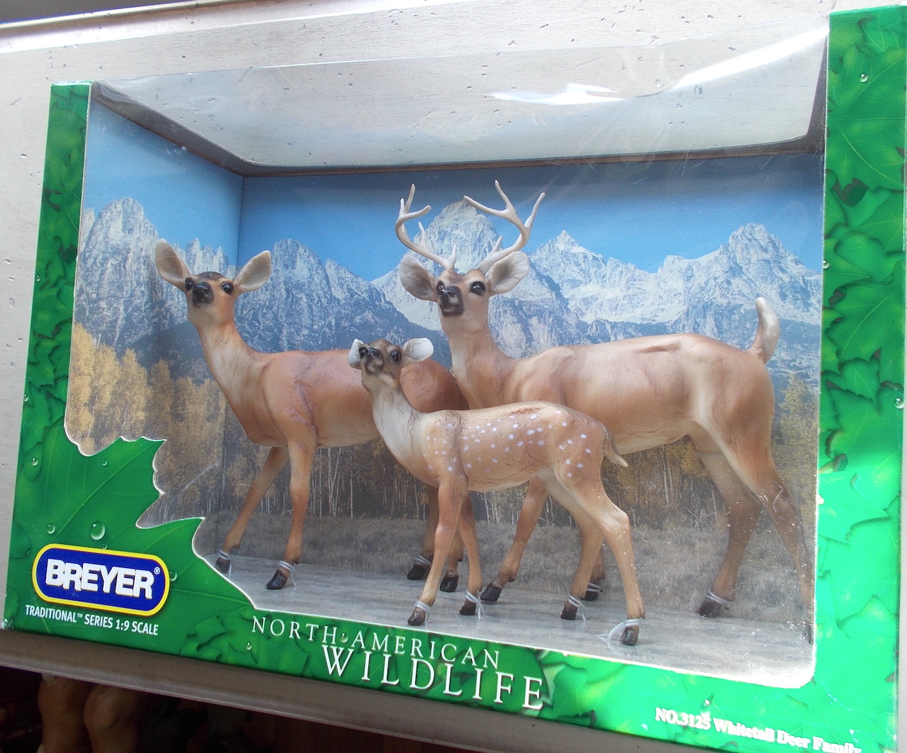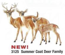 Referred to as the 'Summer Coat Deer Family' in the 2005 Catalog, and as 'Whitetail Deer Family' on the box and on the 2006 Catalog insert. The dealer catalog shows the previous deer set #3124, but the box catalog and 2006 catalog insert shows the new Summer Coat version.