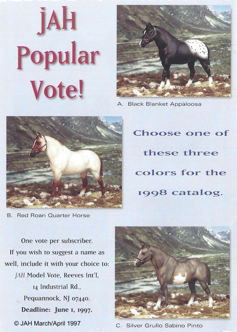1997 JAH Popular Vote Contest - The winning color was the Silver Grulla Sabino Pinto.