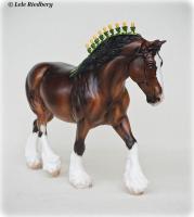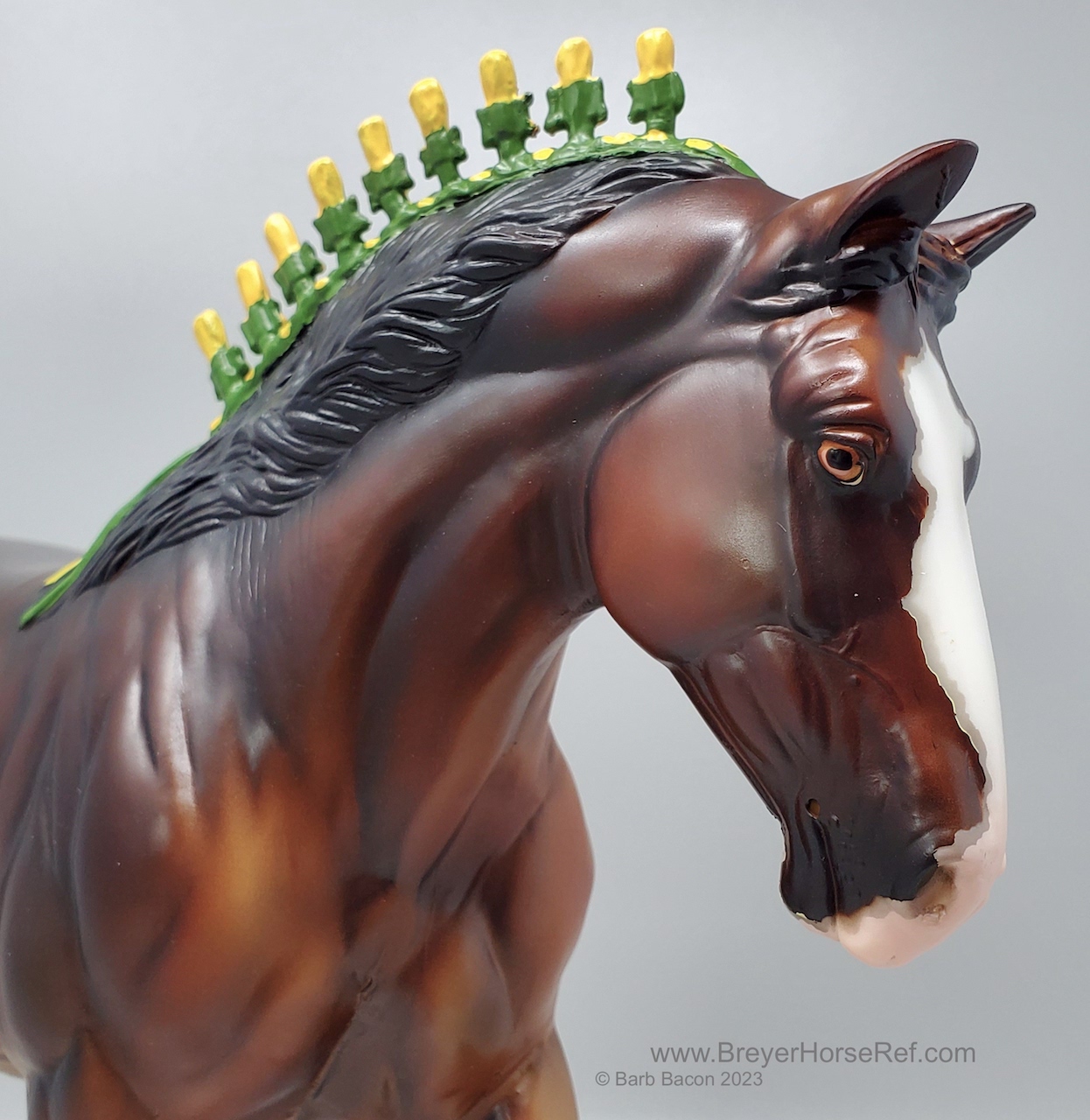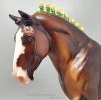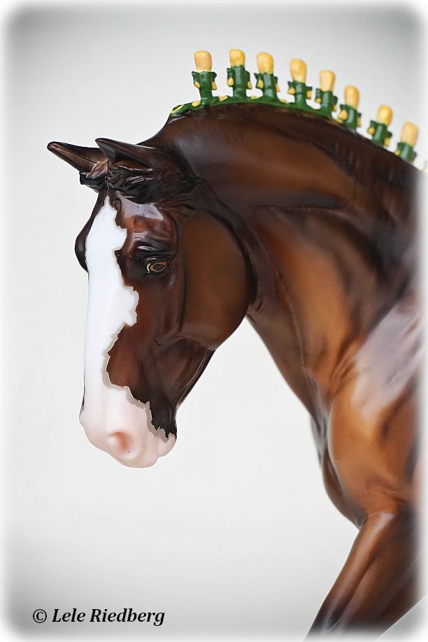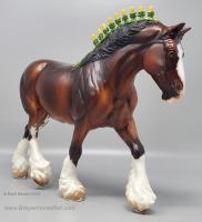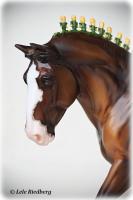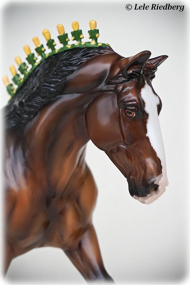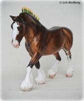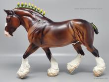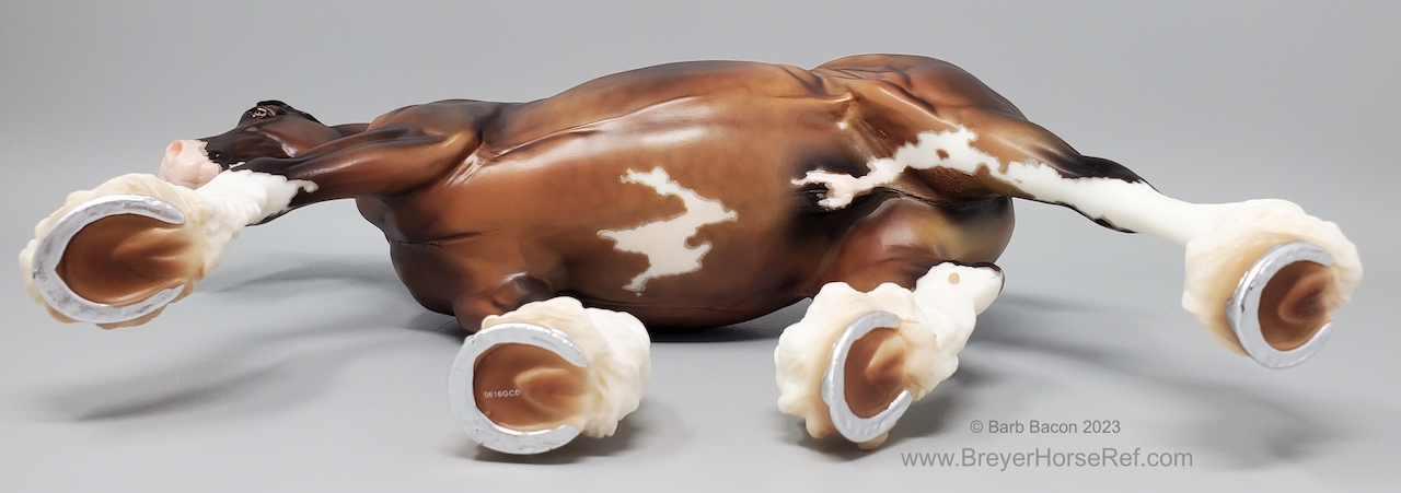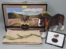Bay Sabino with COA. The first model of this production run was attached to a base with a brass plate with the model's name and year released. This model had two versions, one with mane bobs and short braided tail (90180), and the other had a loose mane and tail (90183). Unknown how many of each were made.