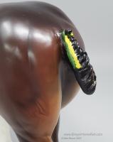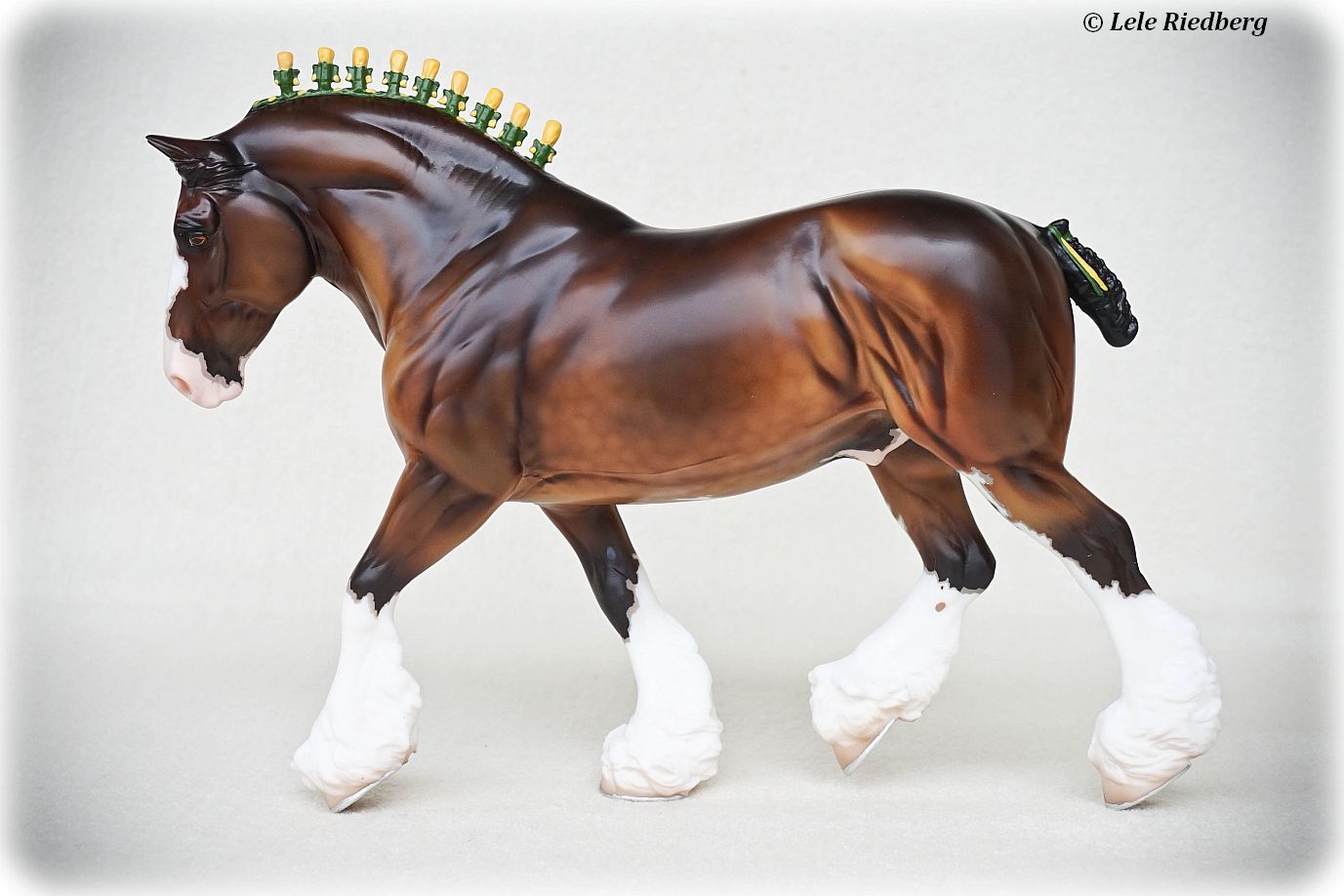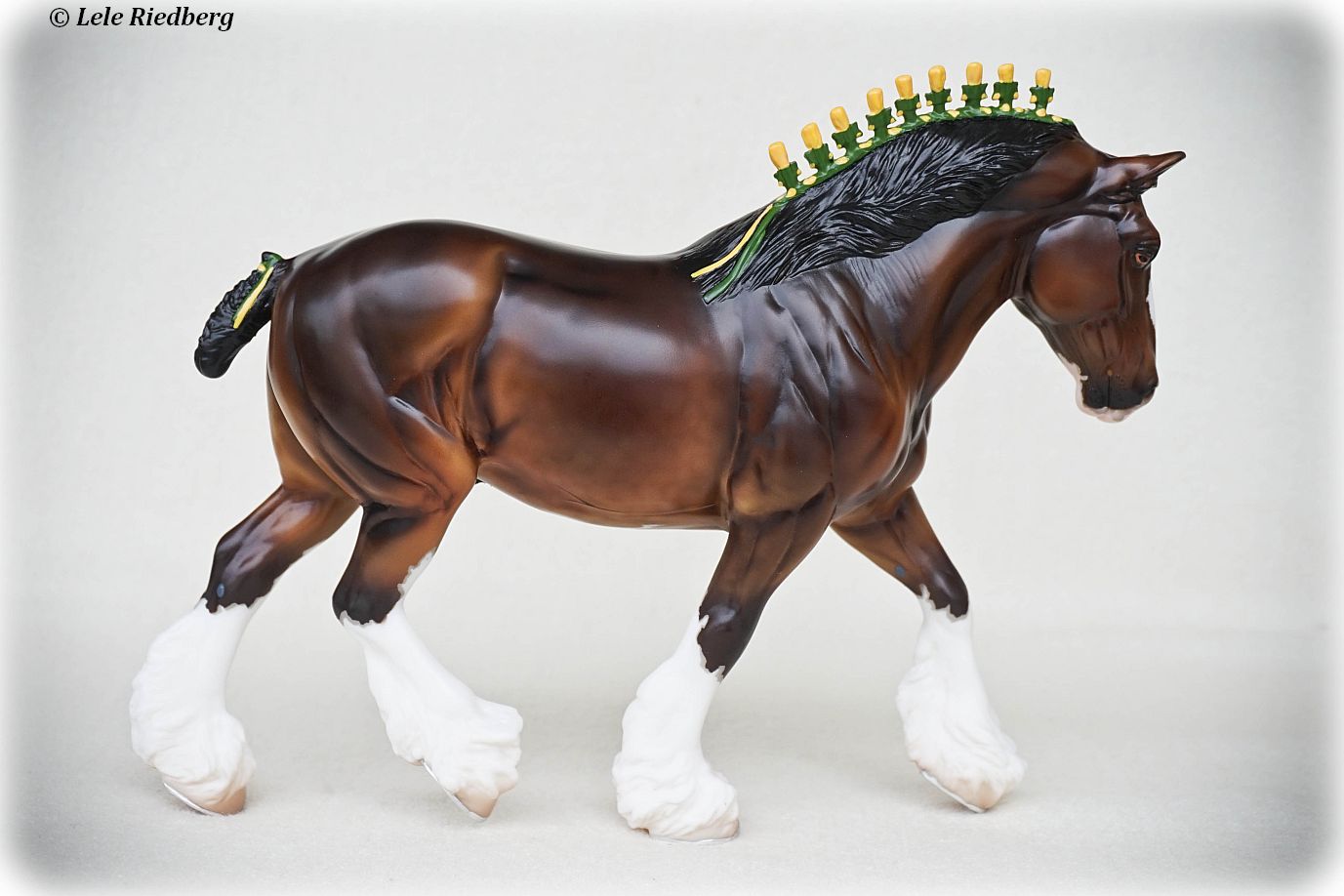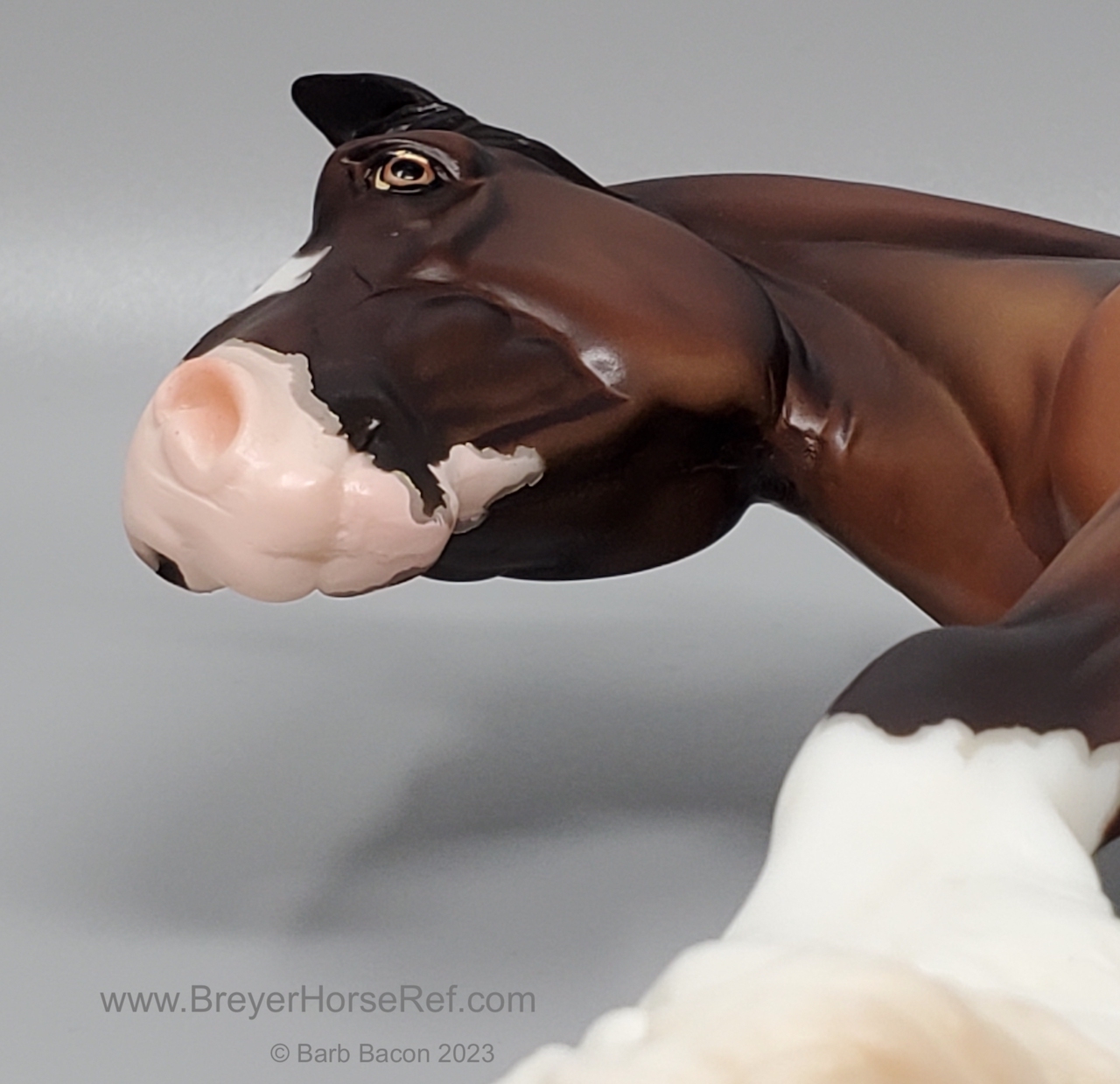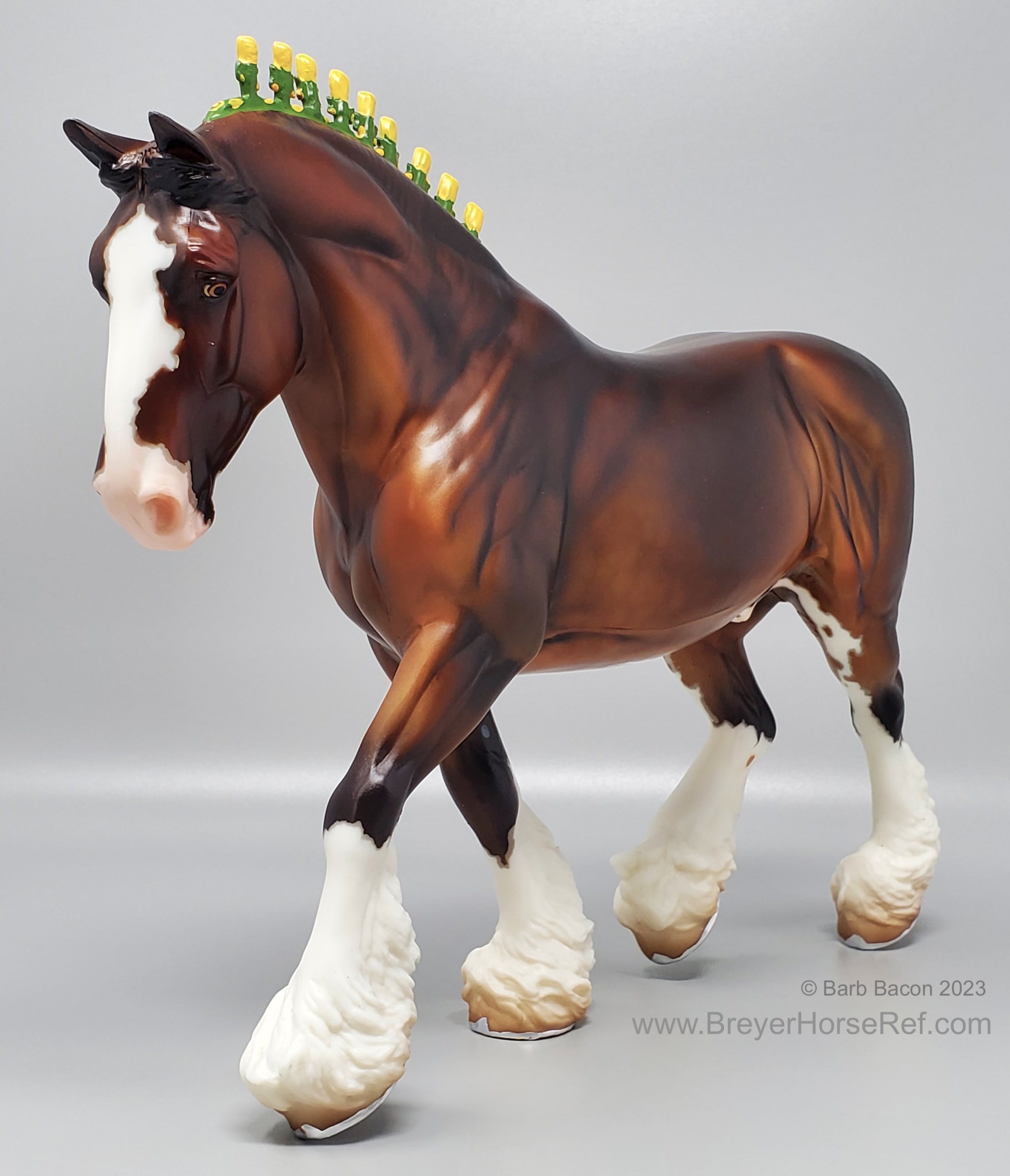 Bay Sabino with COA. The first model of this production run was attached to a base with a brass plate with the model's name and year released. This model had two versions, one with mane bobs and short braided tail (90180), and the other had a loose mane and tail (90183). Unknown how many of each were made.