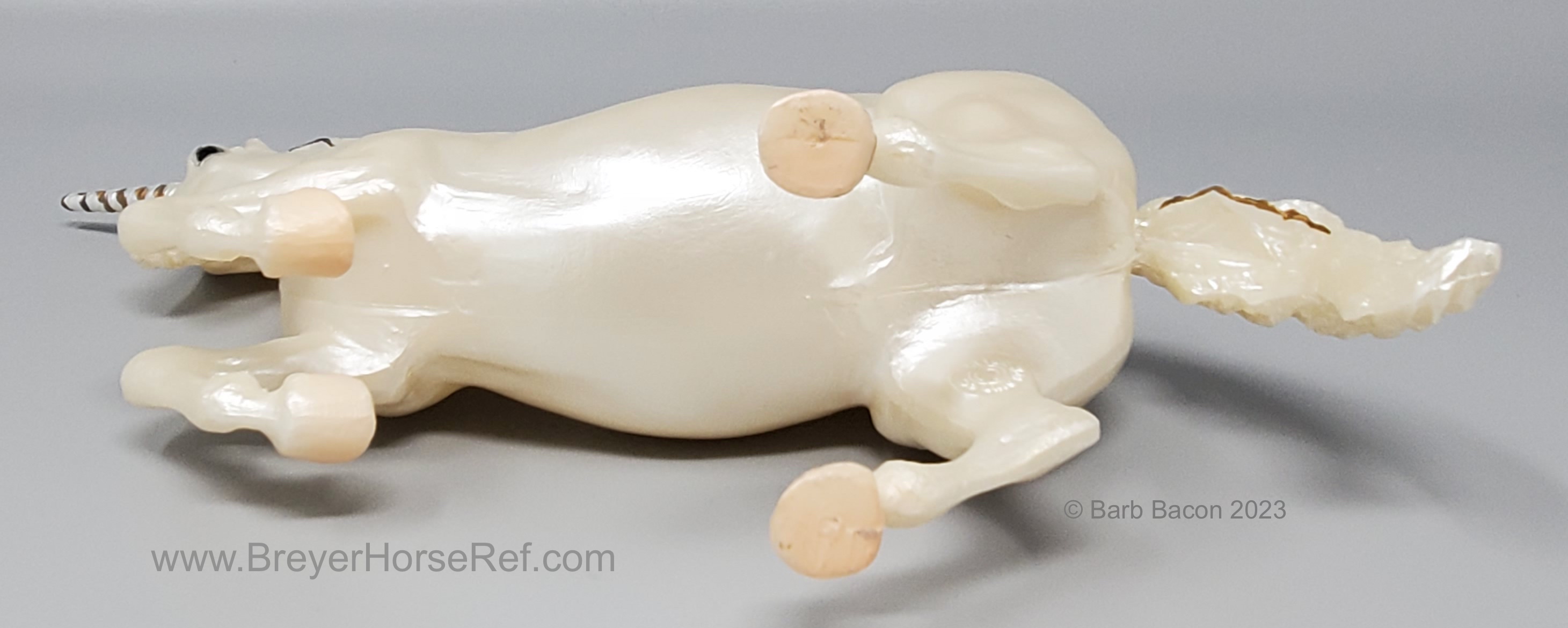 Glossy pearly white with gold accents and a gold striped horn. ToysRUs Exclusive.