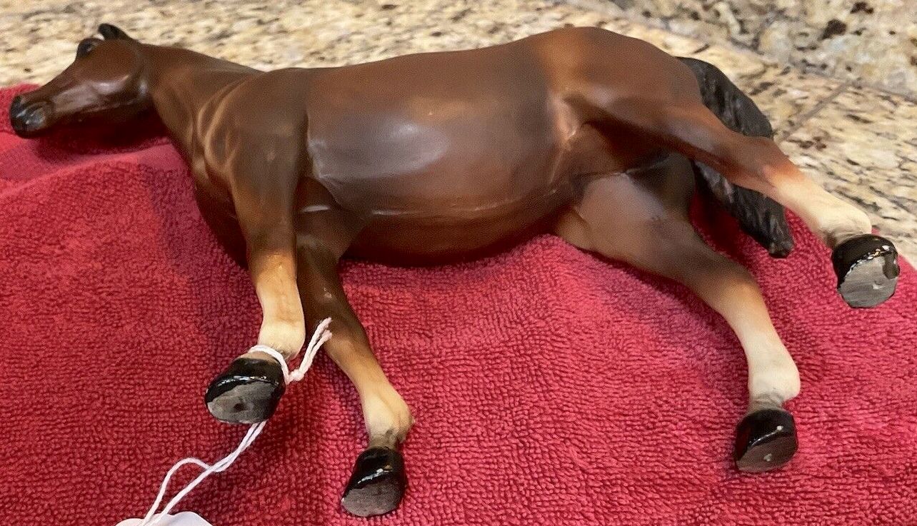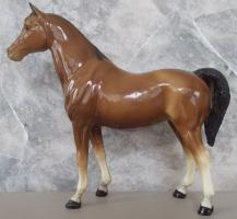 Bay with long stripe, black or charcoal mane and tail, and four stockings with black hooves, but no black on the legs. Variations of the bay color are light to dark, and some have reddish tones. The name 'Sheba' was dropped by the 1969 catalog. Models were advertised in a matte finish in the later 1968 catalog. The small Blue ribbon stickers were typically on the glossy models and the large blue ribbon stickers were on the matte models. Early models had eye whites (most eye whites had ended by 1969). Originally had the round Breyer Molding Co Copyright Stamp, and around 1970, the USA Stamp was added.