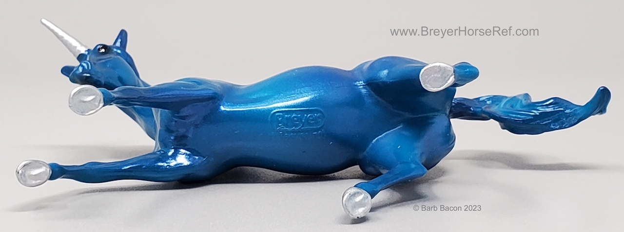 Also in 2023, this model was released in the Stablemates Unicorn Foal Surprise #5549 - Moonlight Coast Unicorn Family. This set included a blue Magnolia, silver Walking TB and a blue Frisky Foal.