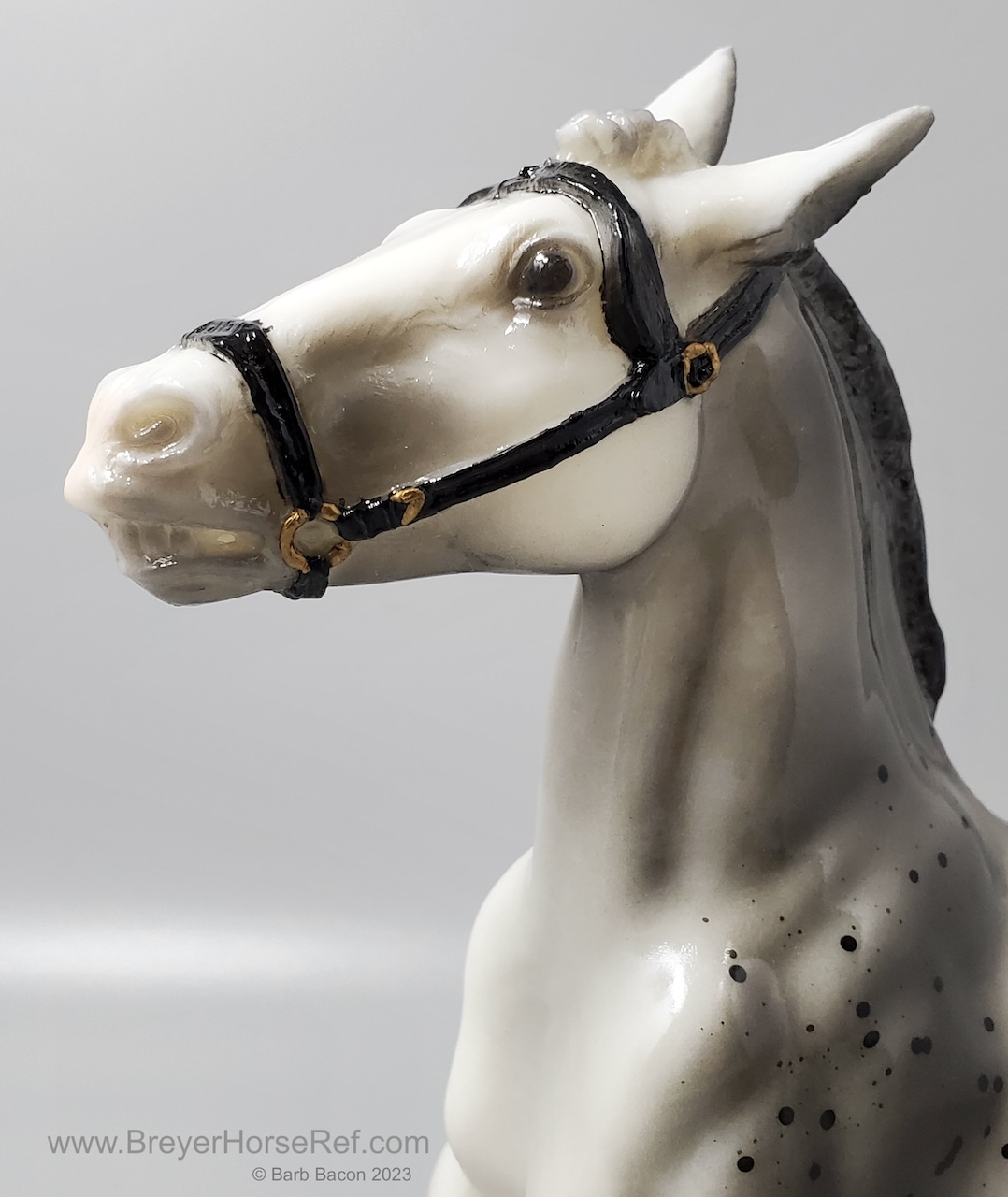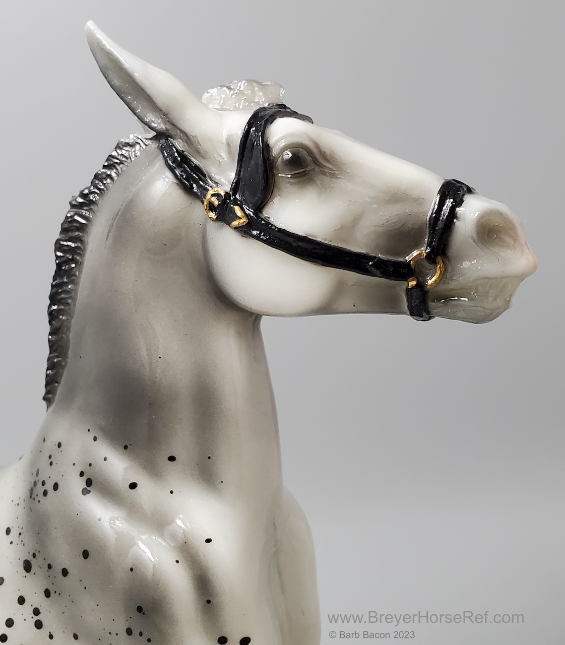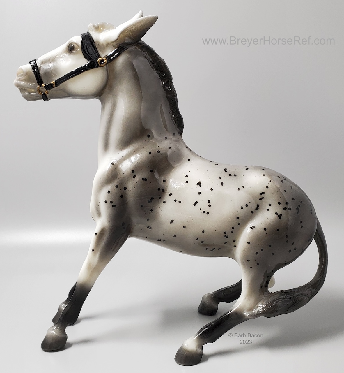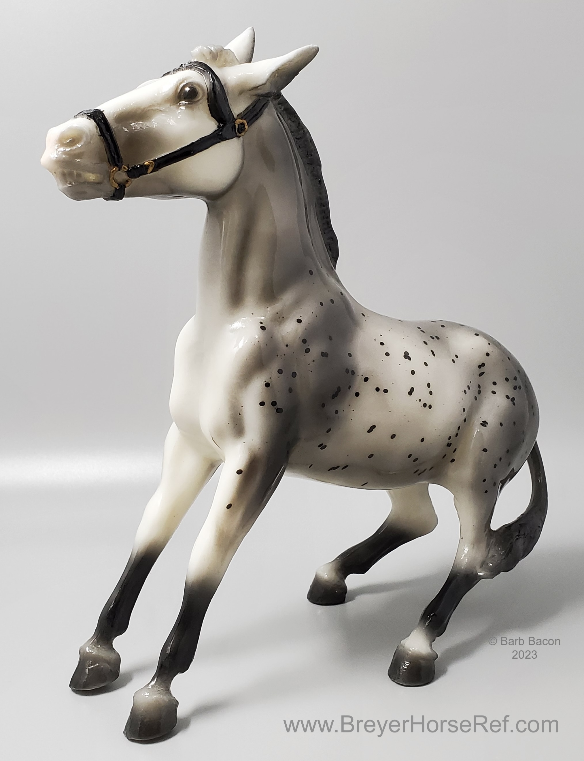Glossy grey appaloosa with hang tag. Released January-June. On the 1999 Retired List.
