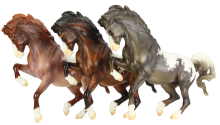 This is the 2023 Ambassador Model, given to volunteers and Judges for Breyer events including BreyerWest, BreyerFest and miscellaneous events in 2023. The colors were a bay, sunburnt black, and strawberry roan with a snowcap blanket appaloosa pattern. The Sunburnt Black has both a blue and brown eye. Originally advertised as a run of 125 each, the JAH magazine has a final count of 133 each, plus 14 glossy Sunburnt Black Appaloosas.