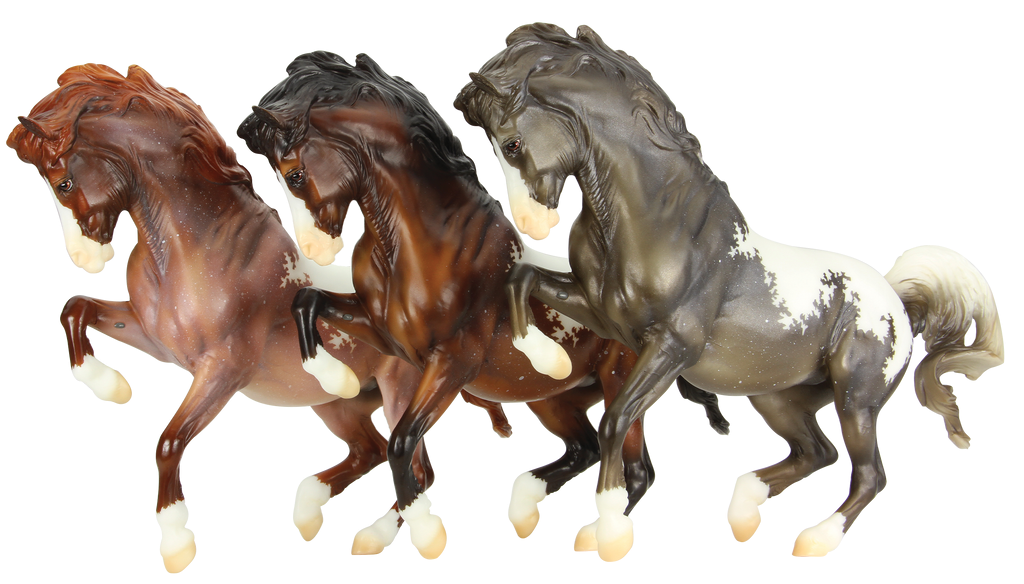 This is the 2023 Ambassador Model, given to volunteers and Judges for Breyer events including BreyerWest, BreyerFest and miscellaneous events in 2023. The colors were a bay, sunburnt black, and strawberry roan with a snowcap blanket appaloosa pattern. Originally advertised as a run of 125 each, the JAH magazine has a final count of 133 each, plus 14 glossy Sunburnt Black Appaloosas.
