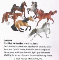Set #300100 Stallion Collection - 6 Stallions from 2005-2006, included the Rearing Andalusian, Big Lick TWH, Cantering TWH, Show Pose Saddlebred, Sliding Stop QH, and Standing QH. Same set released by Target as #720008. On the 2006 Retired List.