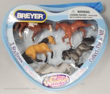 Set #300141 Five Mini Whinnies Stallions from 2008, included the Big Lick TWH, Cantering TWH, Rearing Andalusian, Sliding Stop QH and Standing QH. Not pictured in the catalog.