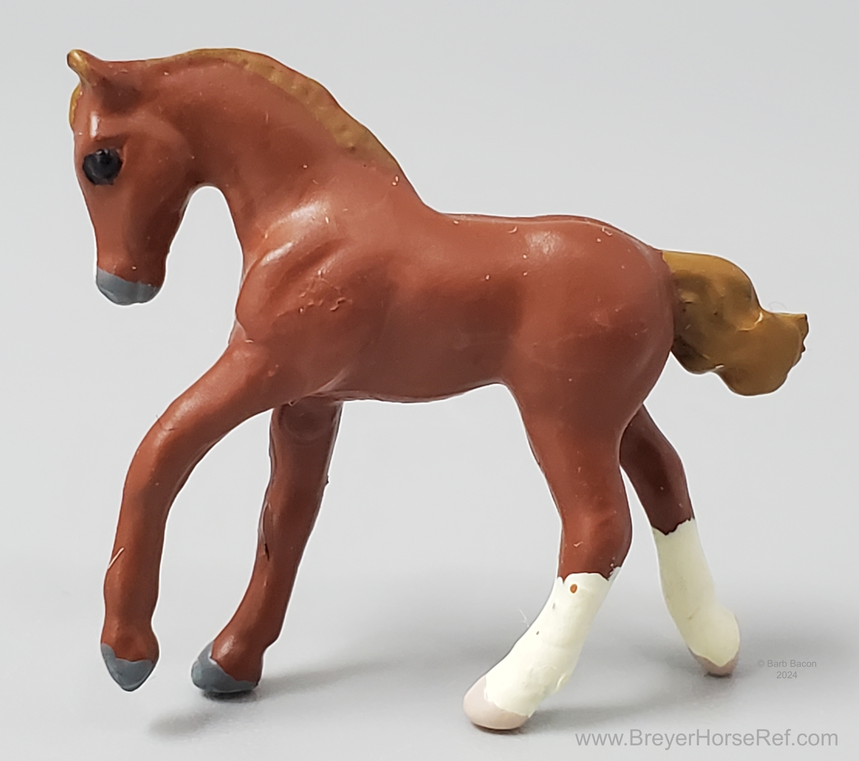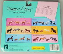 This model was released in the Series I Saddlebred Set #3960, Winners Choice Micro Horses by Creata International. Per Artist Candace Liddy, the packaging was completed in 1996, however the models were not available until 1997. Breyer bought this mold in 2004.