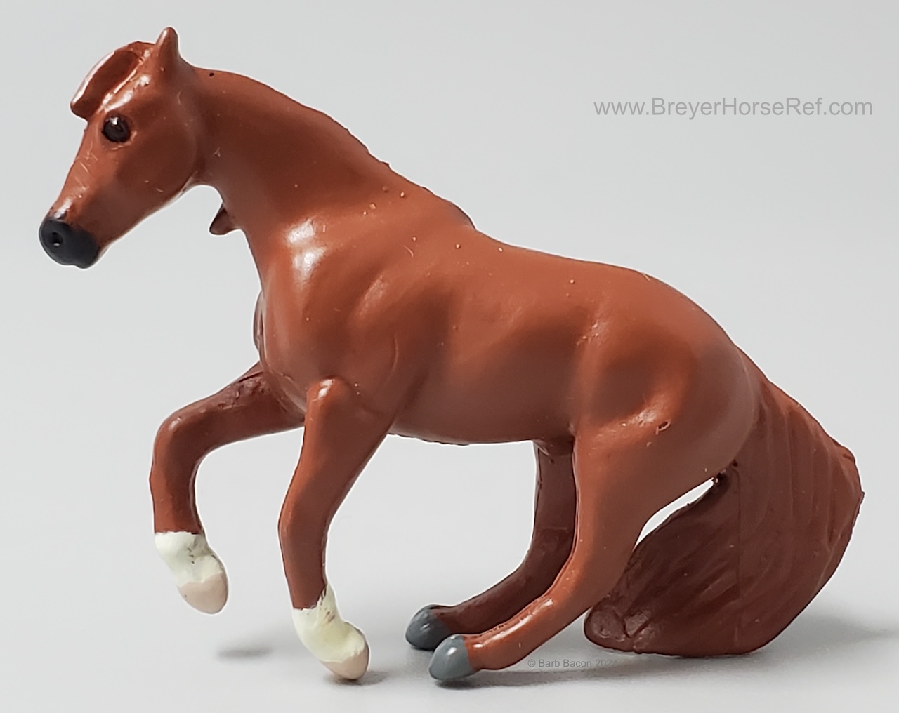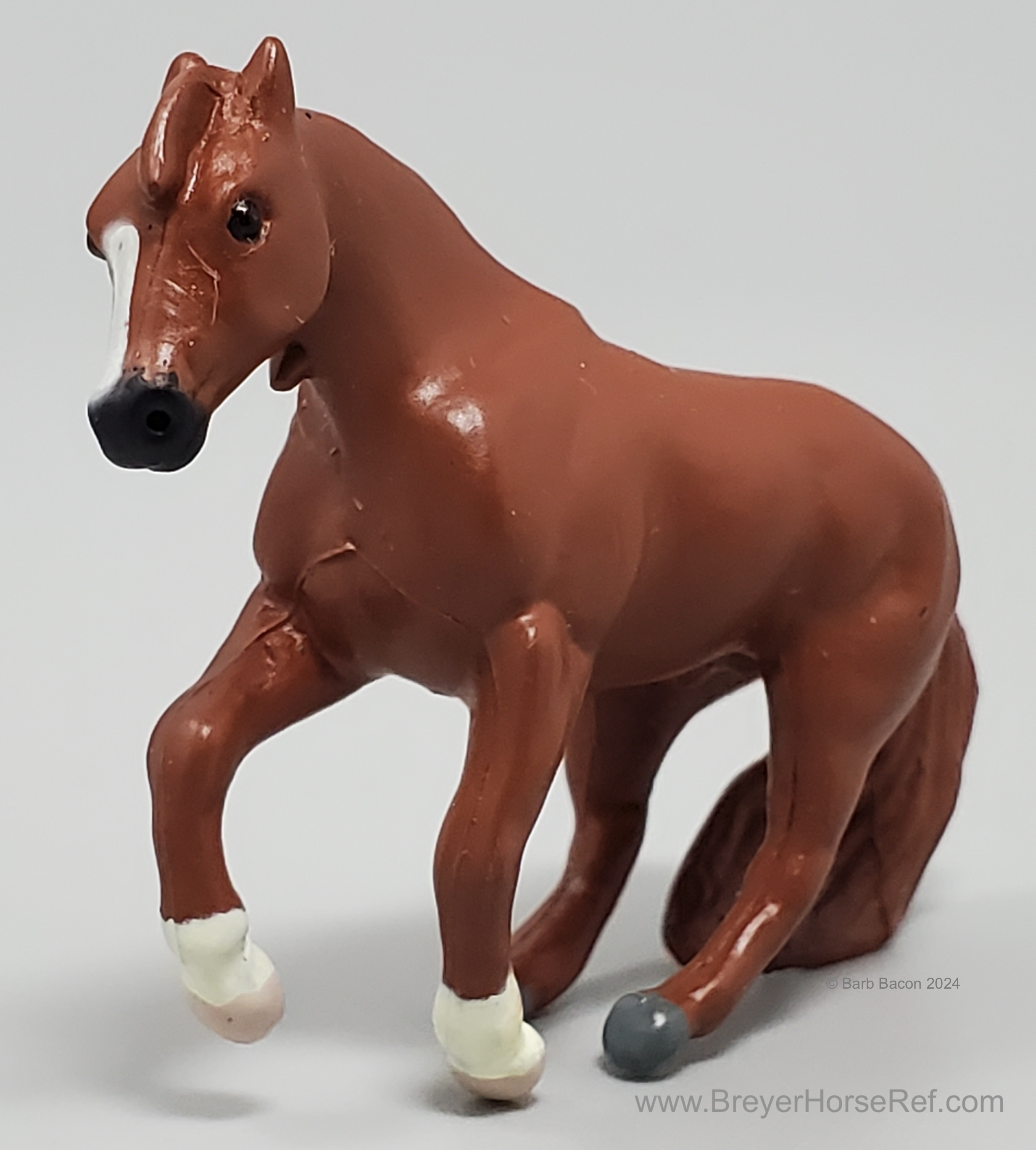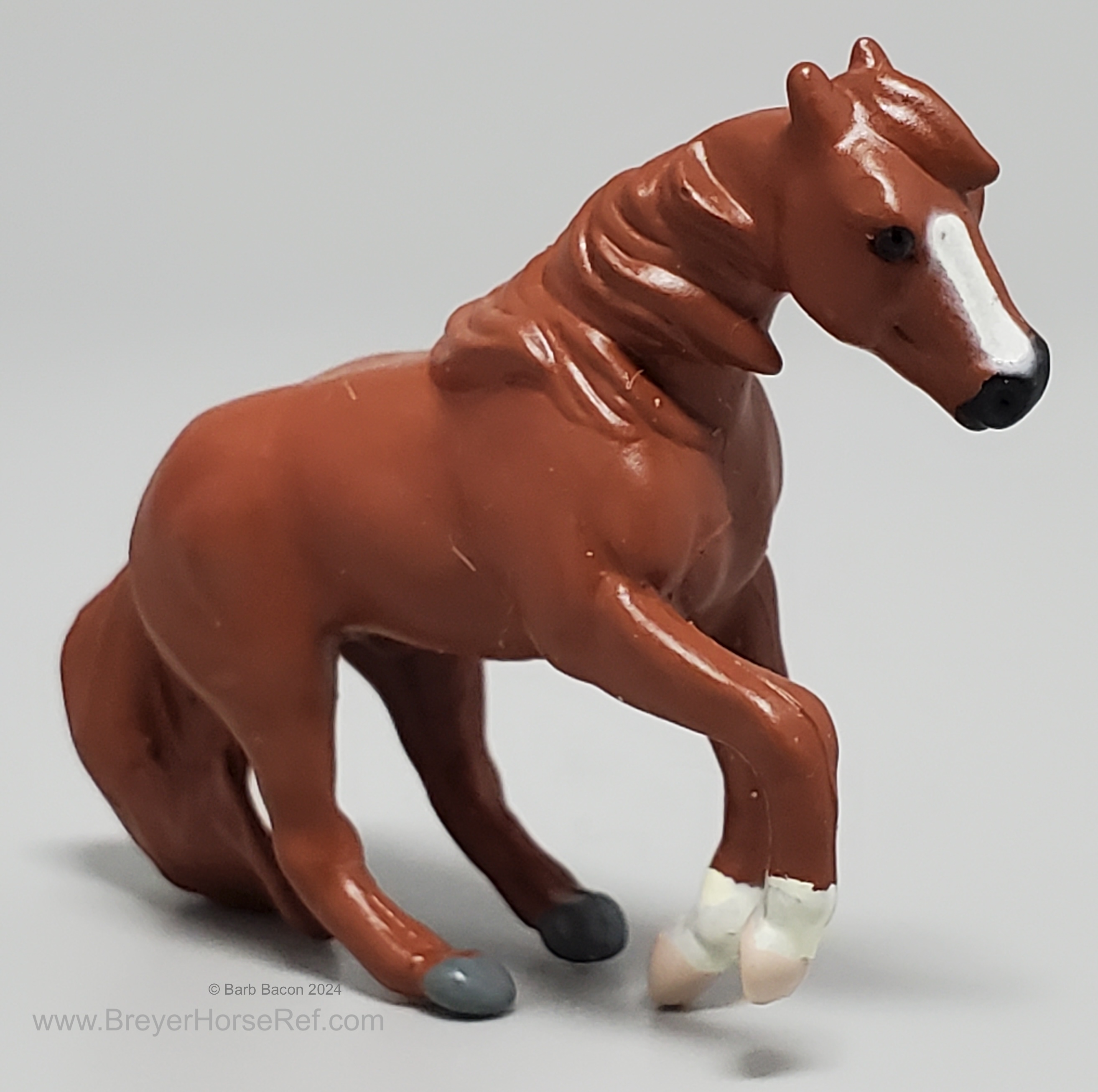 This model was released in the Series I American Quarter Horse Set #3960, Winners Choice Micro Horses by Creata International. Per Artist Candace Liddy, the packaging was completed in 1996, however the models were not available until 1997. Breyer bought this mold in 2004.