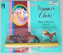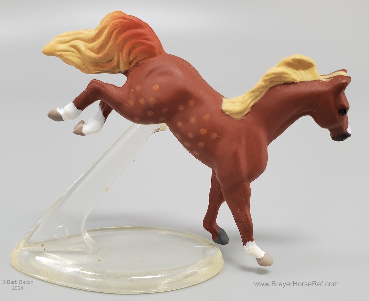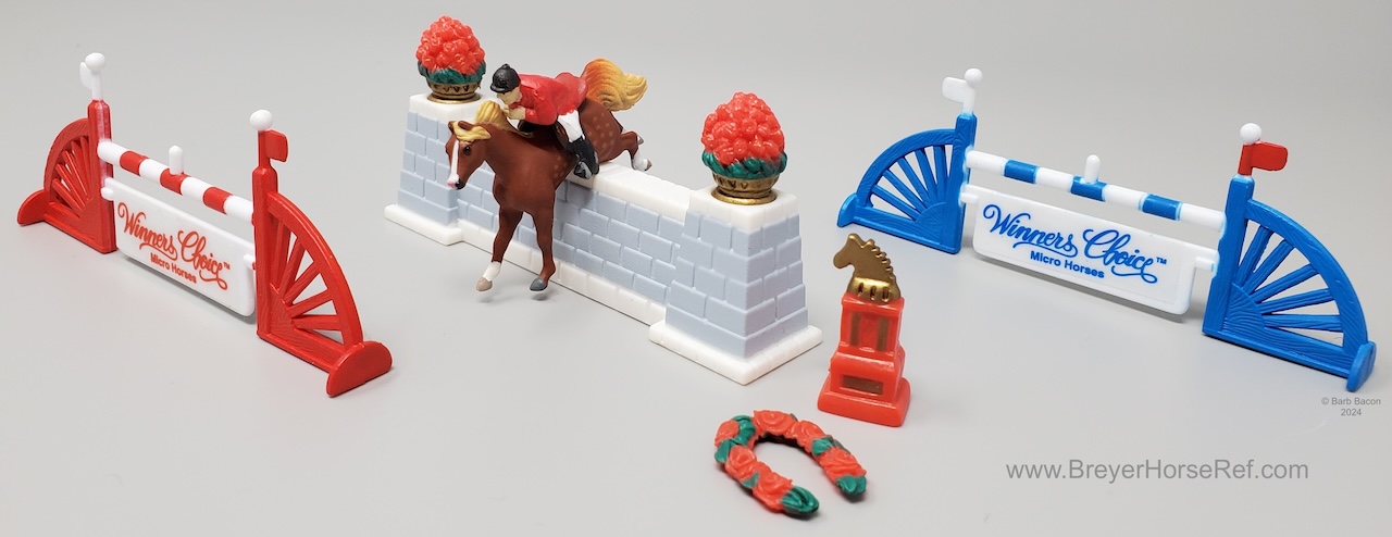 This model was released in the Series 2 Morgan Set #39601, Winners Choice Micro Horses by Creata International in 1997. Also in 1997, this model was released in the Series 2 set #39701 Grand Prix II Playset. Set included 3 jumps and a rider. Both of these sets were produced for Mass Market stores (larger retail stores like Target).