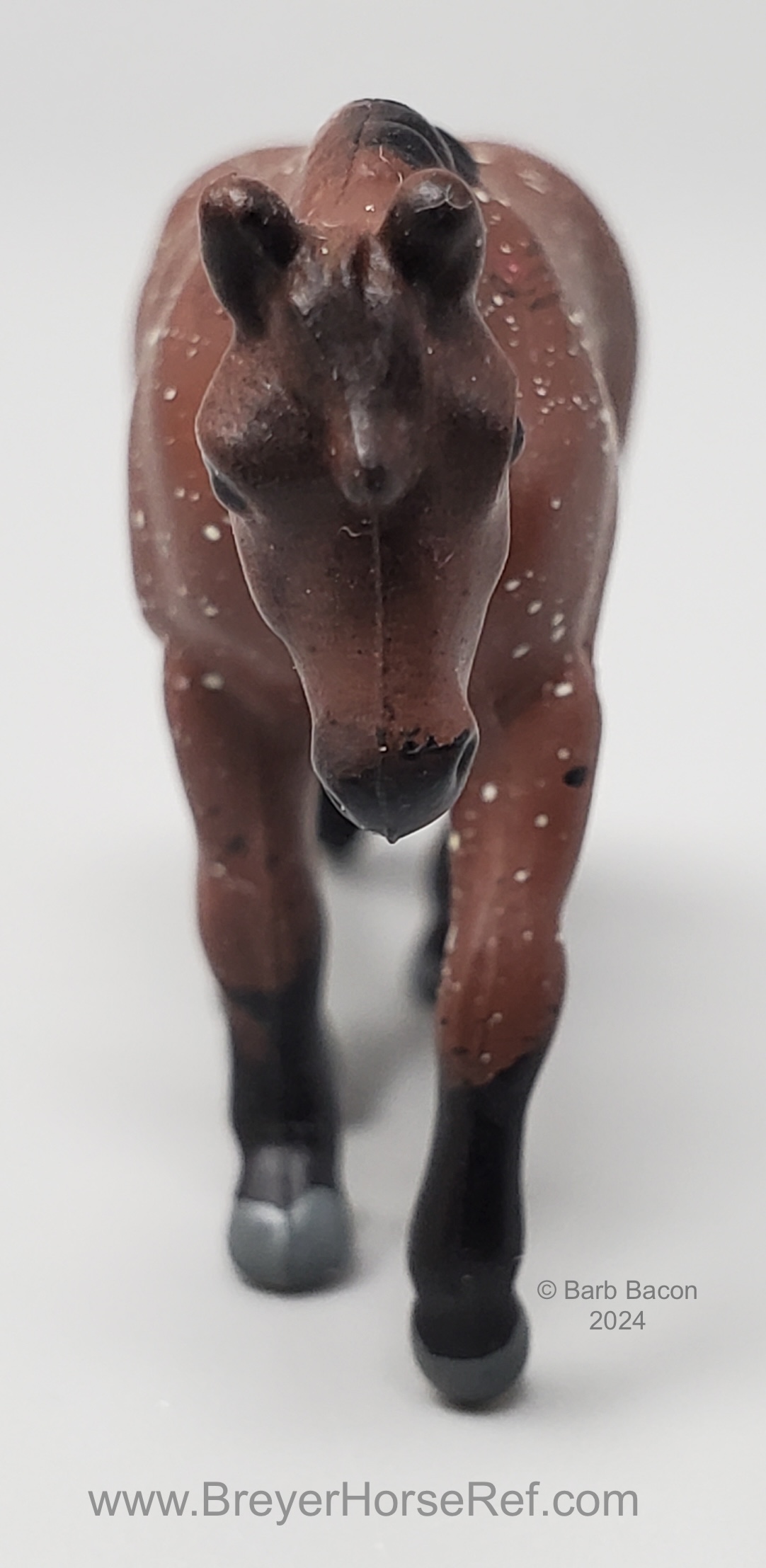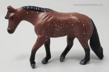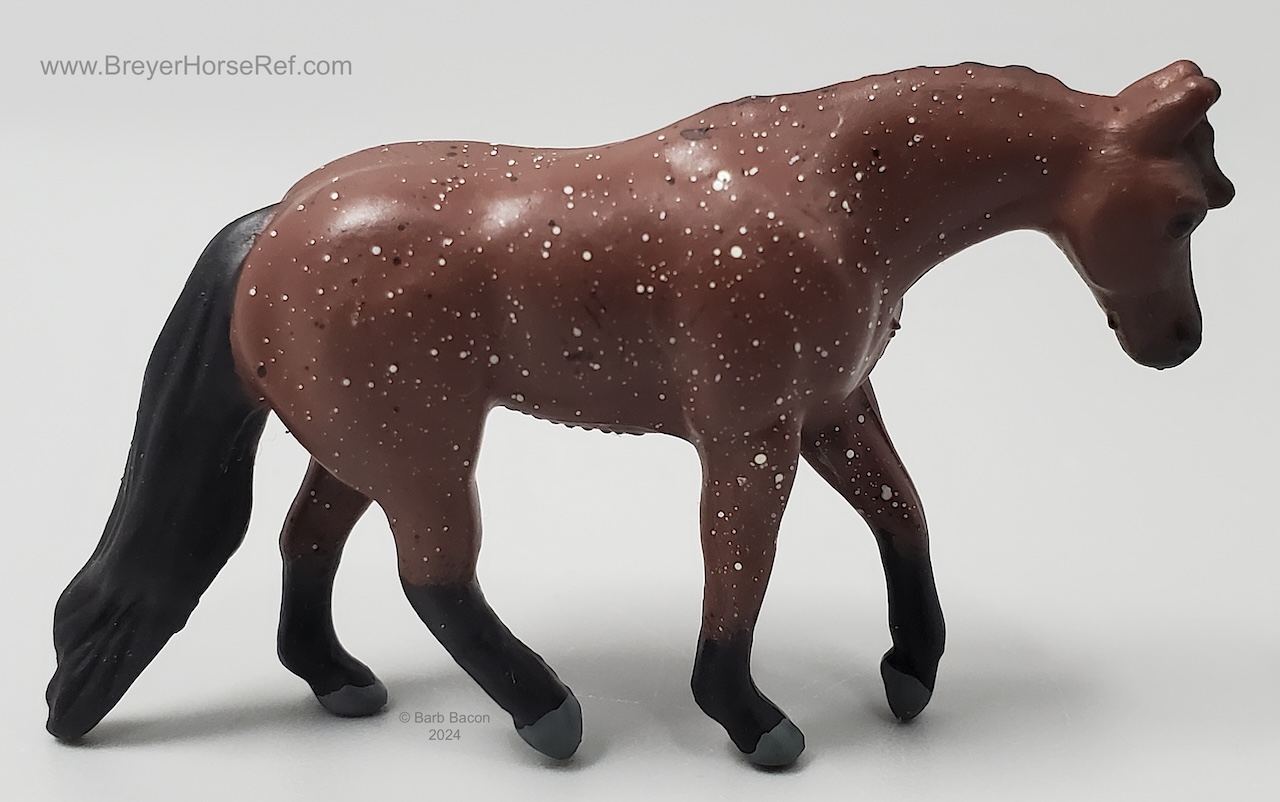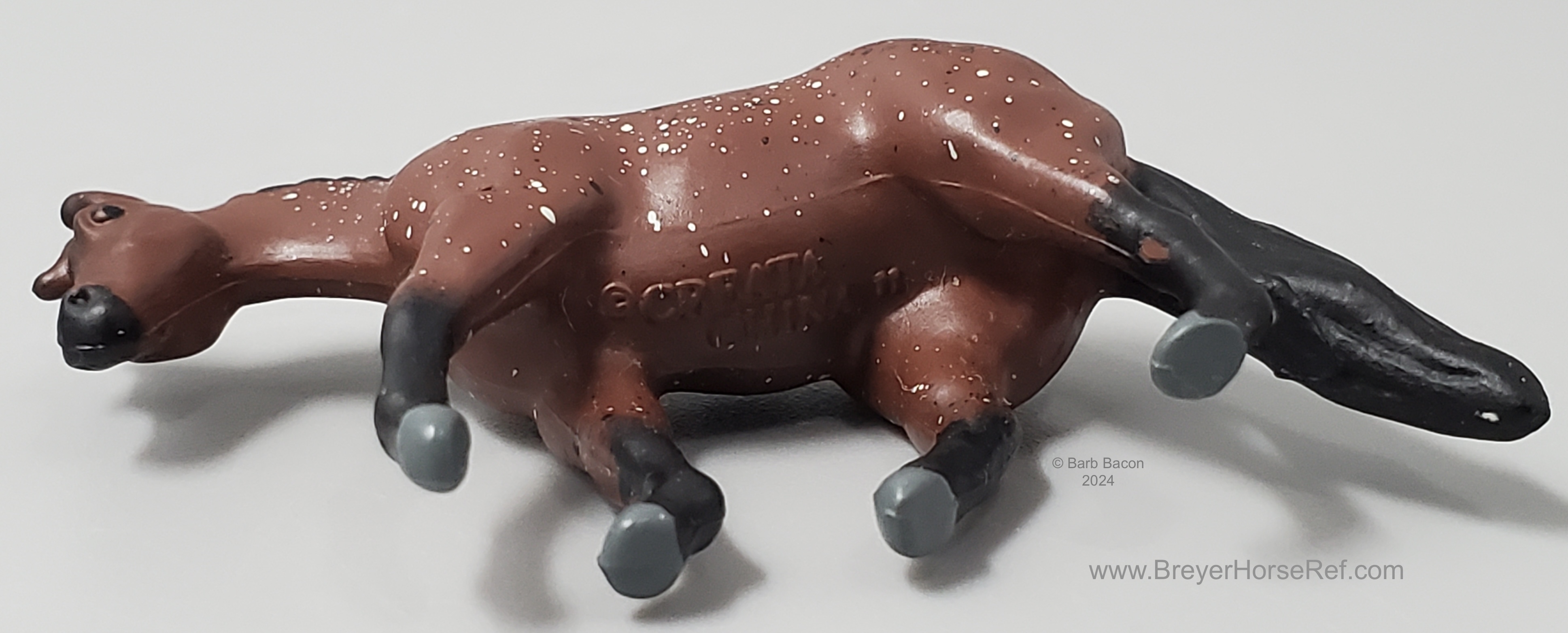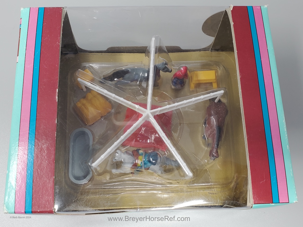 This model was released in the Series I Carousel Cool-Down Playset #3970, Winners Choice Micro Horses by Creata International. Per Artist Candace Liddy, the packaging was completed in 1996, however the models were not available until 1997. Set included a Dark Grey with Black Points Show Pose Saddlebred, Light Grey High Stepping Saddlebred, Bay Jog Trot Mare, 2 dolls, hot walker, water trough, stool, feed bags and hay bales. Breyer bought this mold and accessories in 2004.