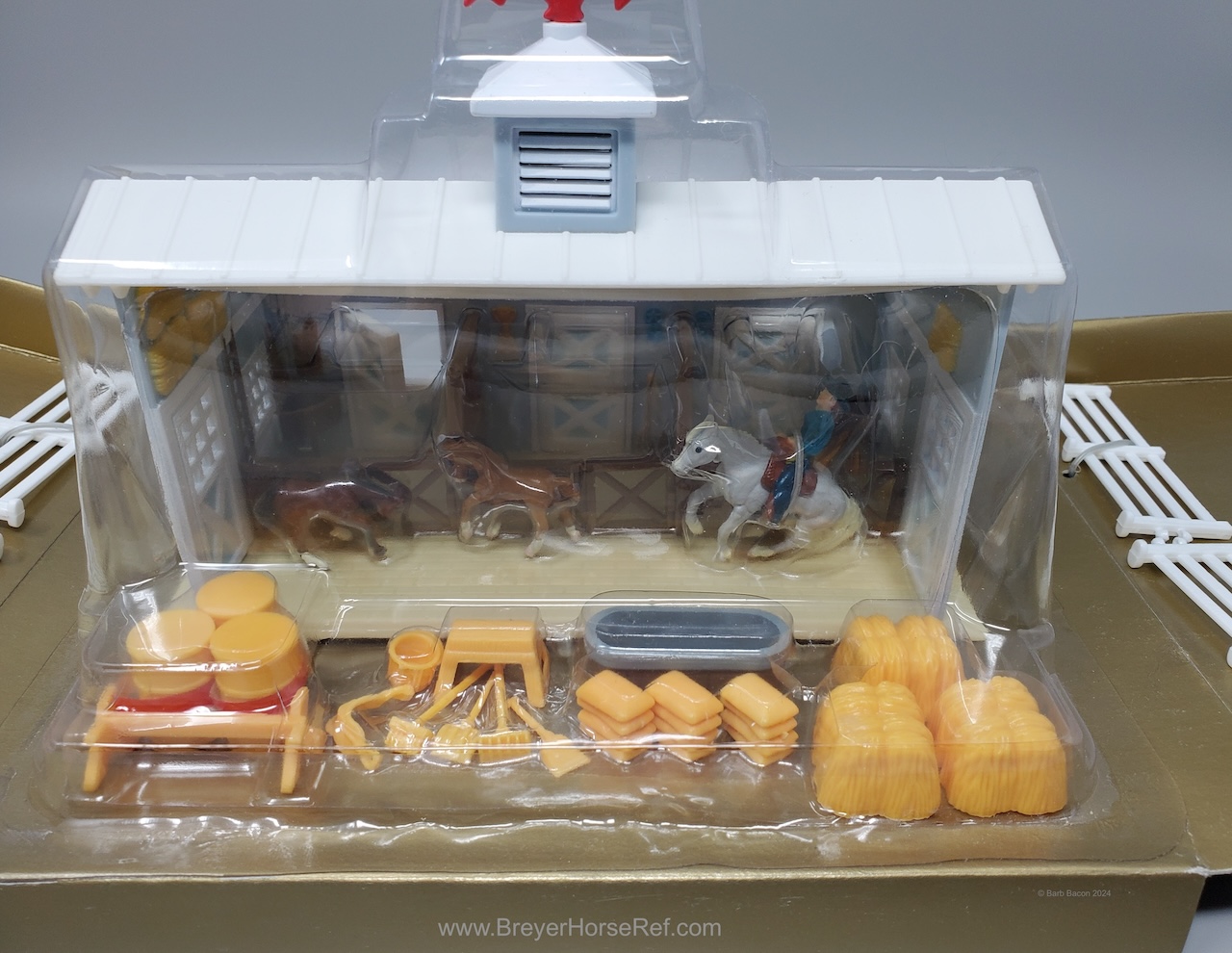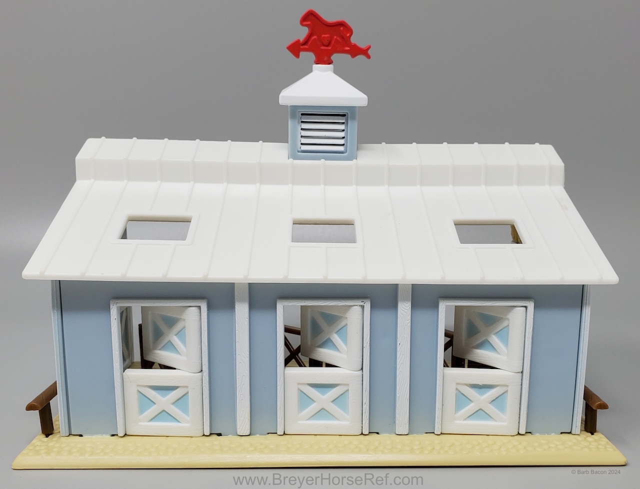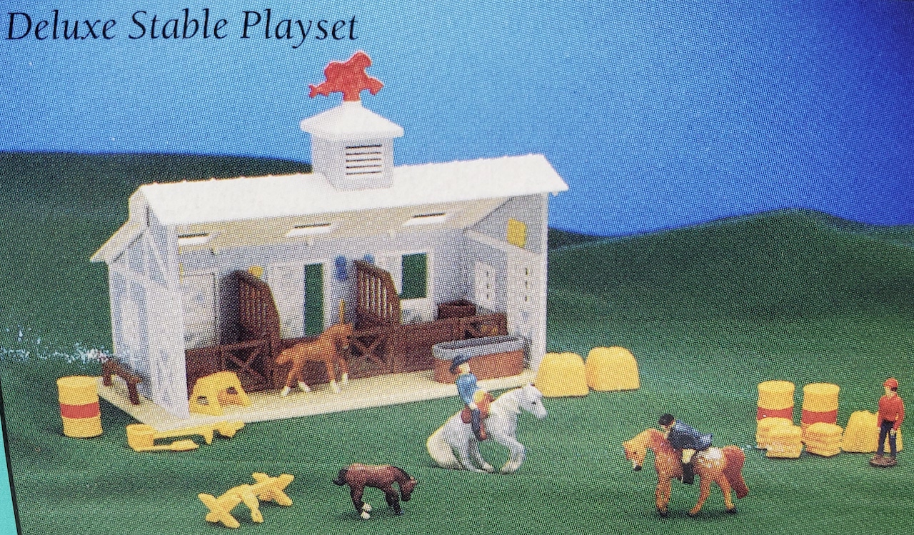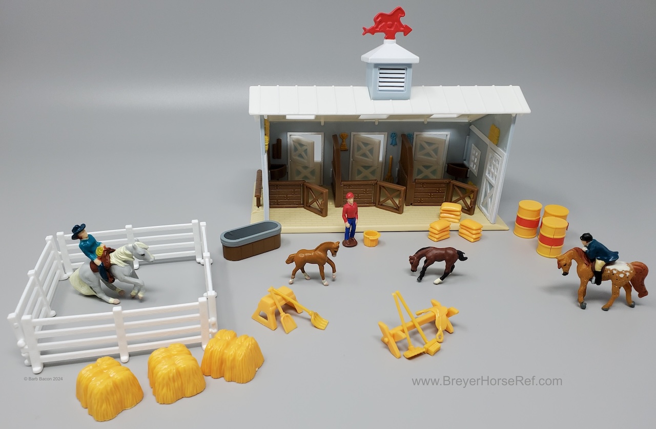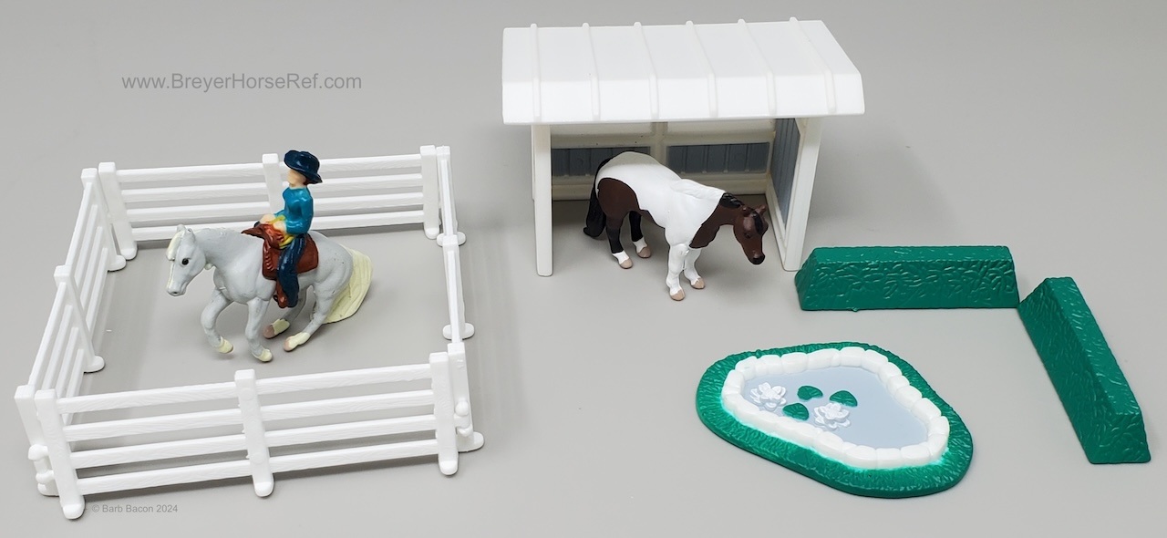 Also in 1997, this model was released in the Series 2 set #39701 Pretty Pasture Playset. Set included a stable, doll, pond, hedges, hay, grain and fencing, and the Sliding Stop QH and Standing QH.