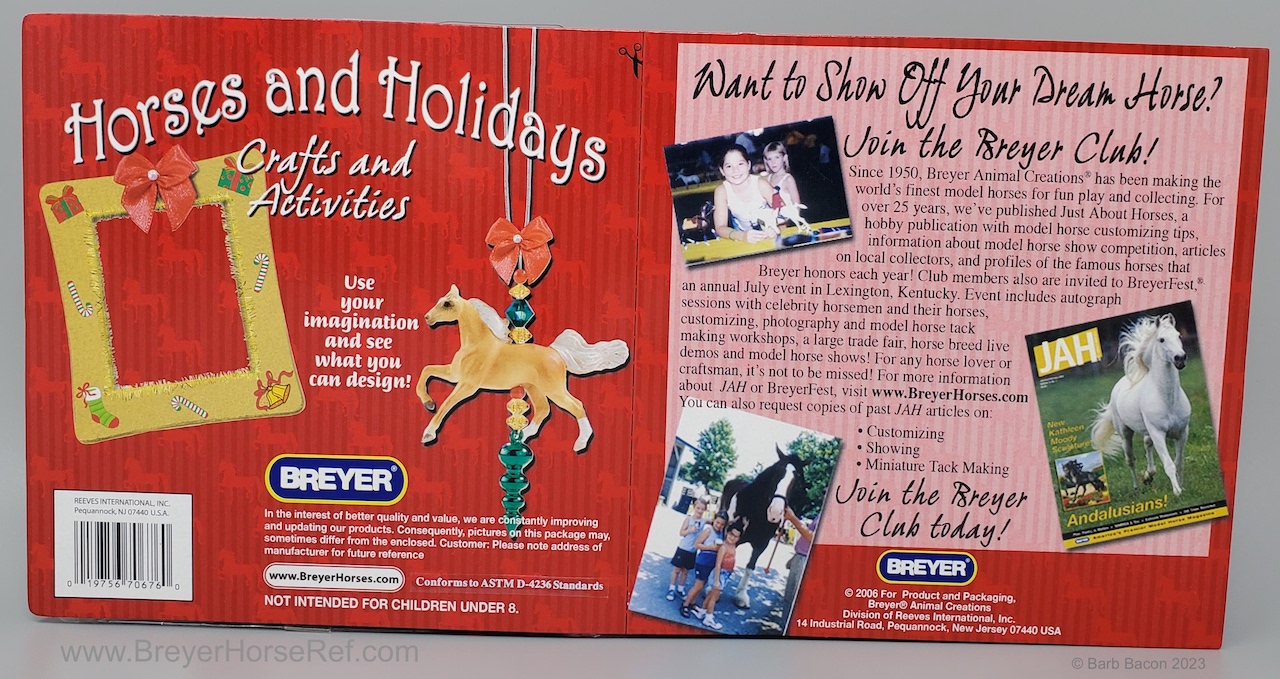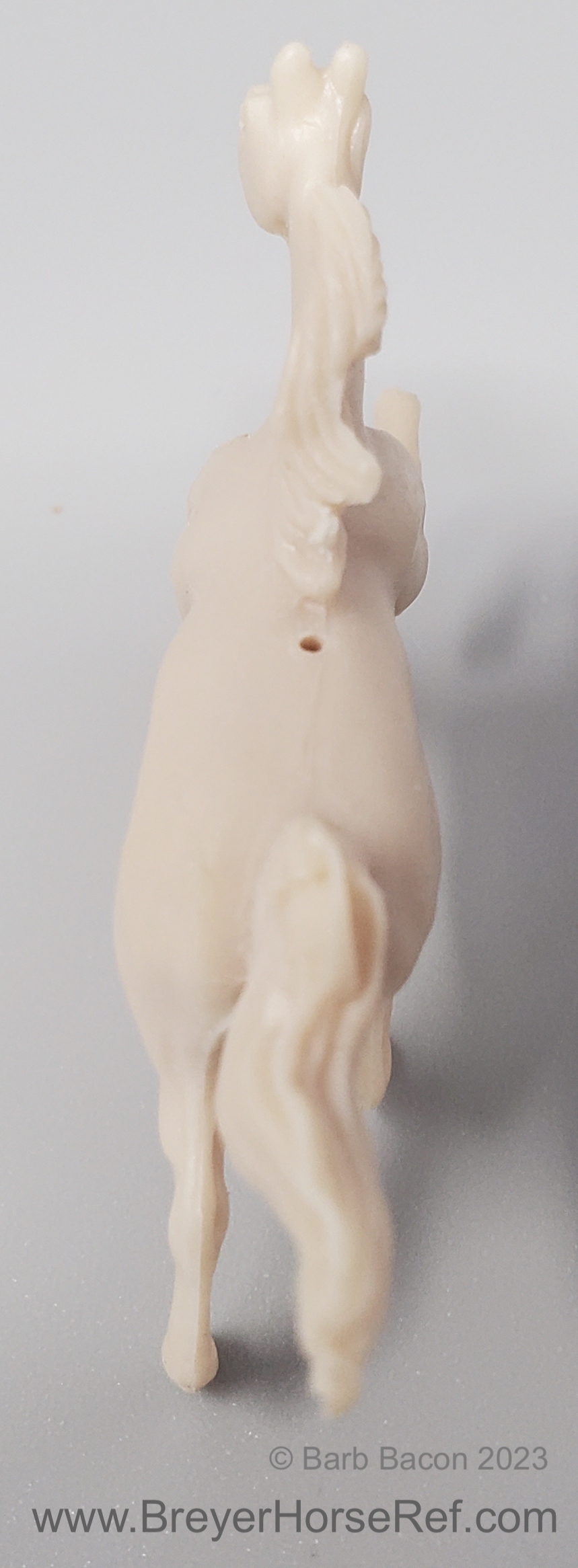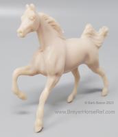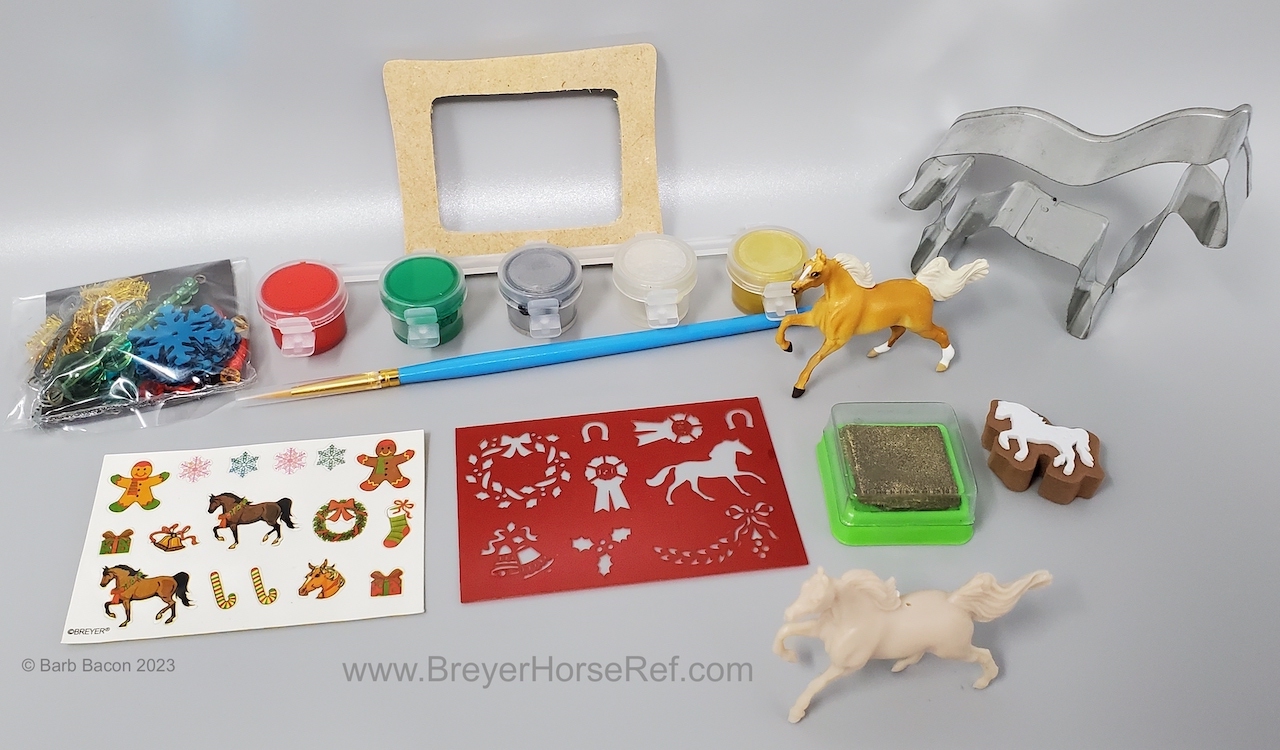 This set came with both a palomino and unpainted Cantering TWH, craft supplies and instruction book. This guy is unpainted and has a tiny little hold drilled through the back for making the ornament.